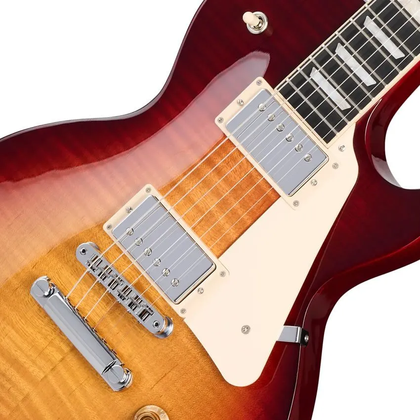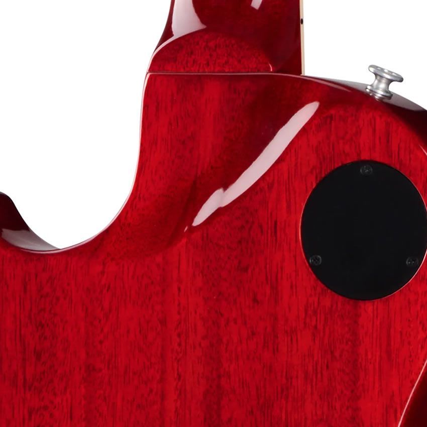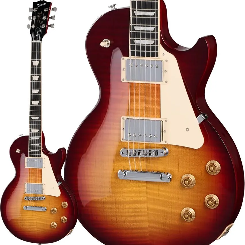 ウルトラ・モダンのウェイト・リリーフを施したマホガニー・ボディにAAフィギュアド・メイプル・キャップ、マホガニー・ネックにバウンド・エボニー指板、スリムテーパー™・プロファイル、アッパー・フレットへの容易なアクセスを可能にするモダン・コンタード・ヒール、キーストーン・ボタン付きグローバー®ロトマチック®・チューナー、幅広いトーン・オプションに対応するプッシュ/プル・ボリューム/トーン・コントロール、コイル・タッピング、フェイズ、ピュア・バイパス・スイッチングに対応する’57 Classic™および’57 Classic+ピックアップなど、通常のレスポール・スタジオとは一線を画す特徴を備えています。