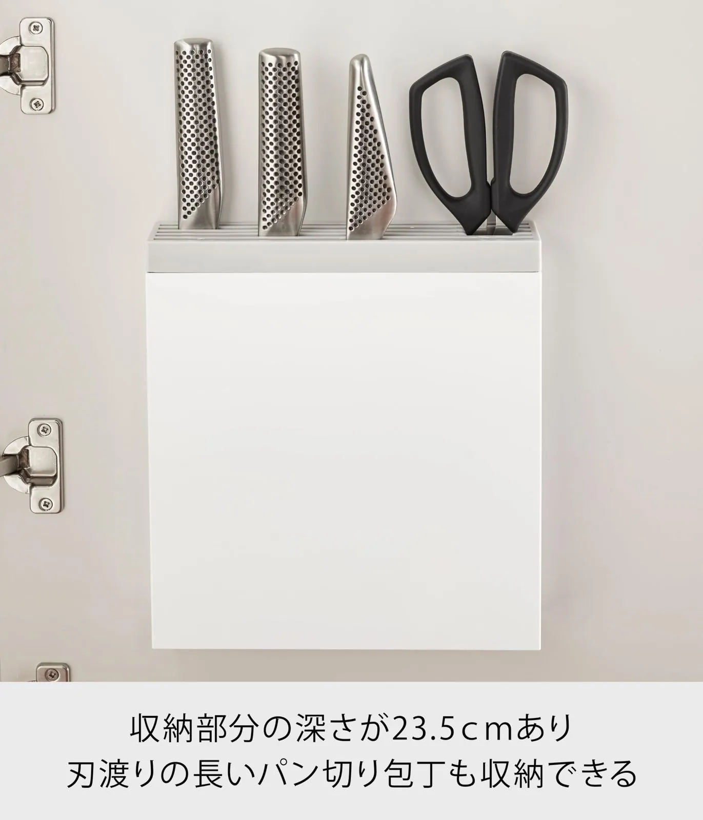 高さがあるのでパン切り包丁が収納できます。