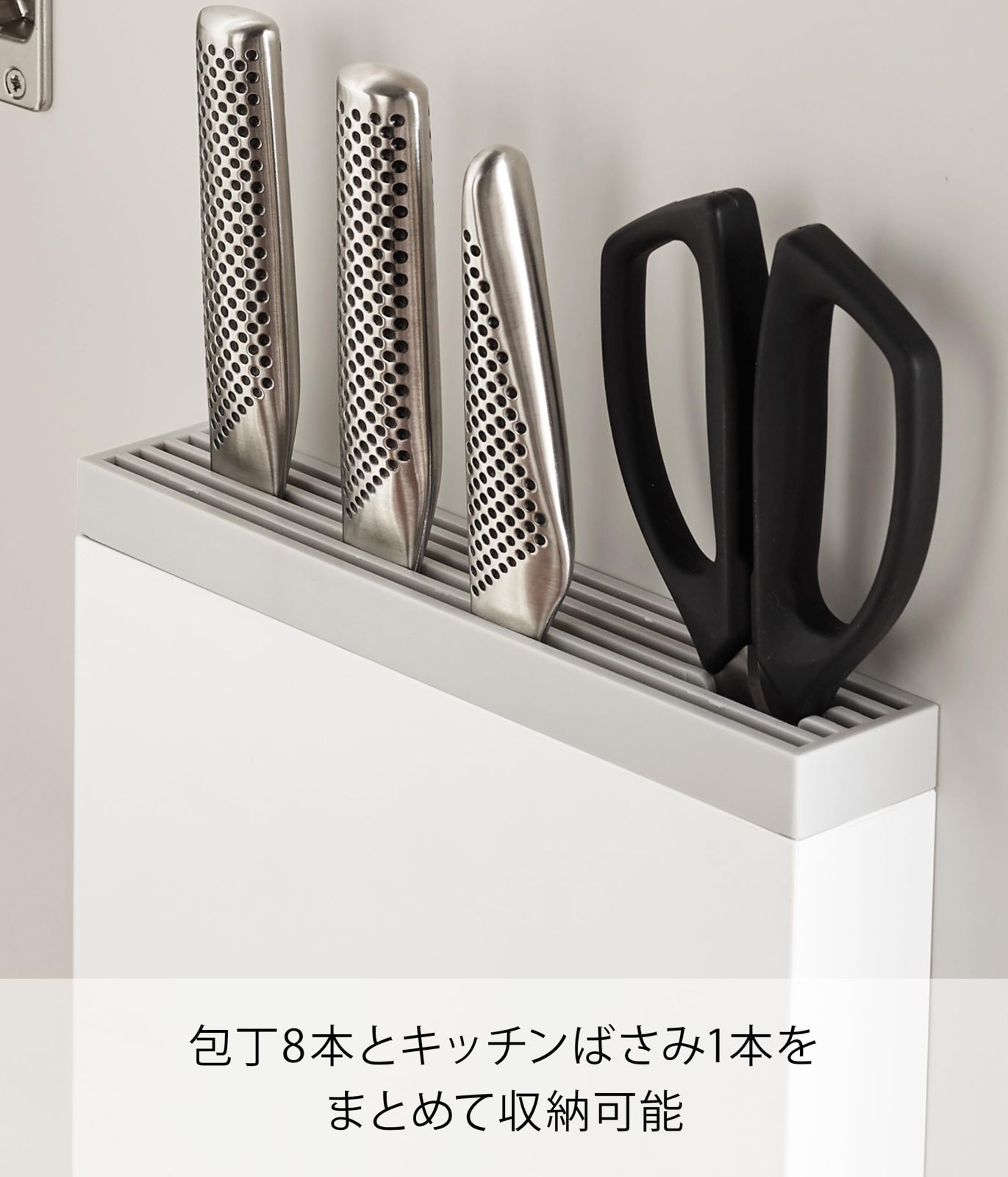対応サイズ:厚み約4.5㎜・刃渡り23.5cmまでの包丁 包丁×8 キッチンばさみ×1