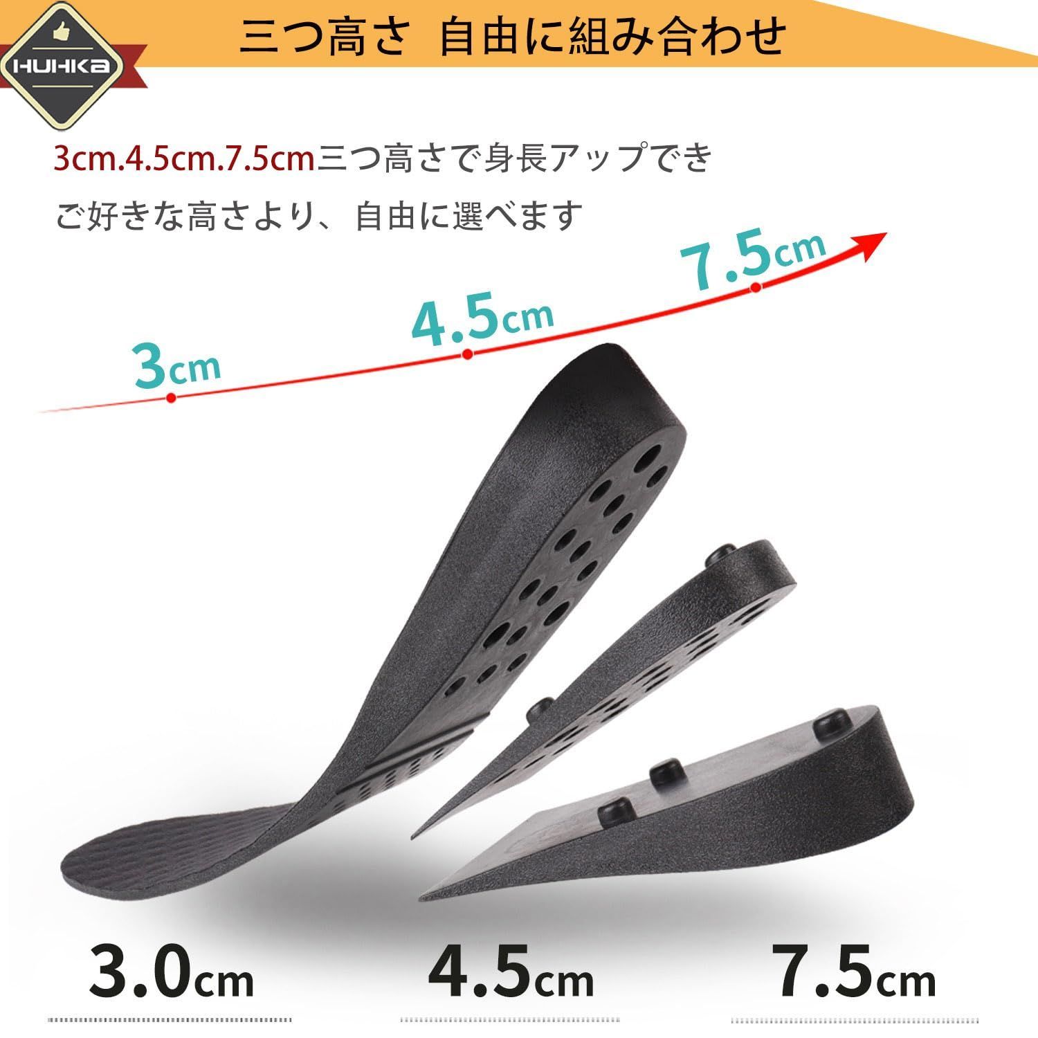 身長アップ]中敷き [こっそり 通気 男女兼用 衝撃吸収 シークレット 日常用 運動型インソール ジョギング [7.5cm/4.5cm/3cm三つ高さ]
