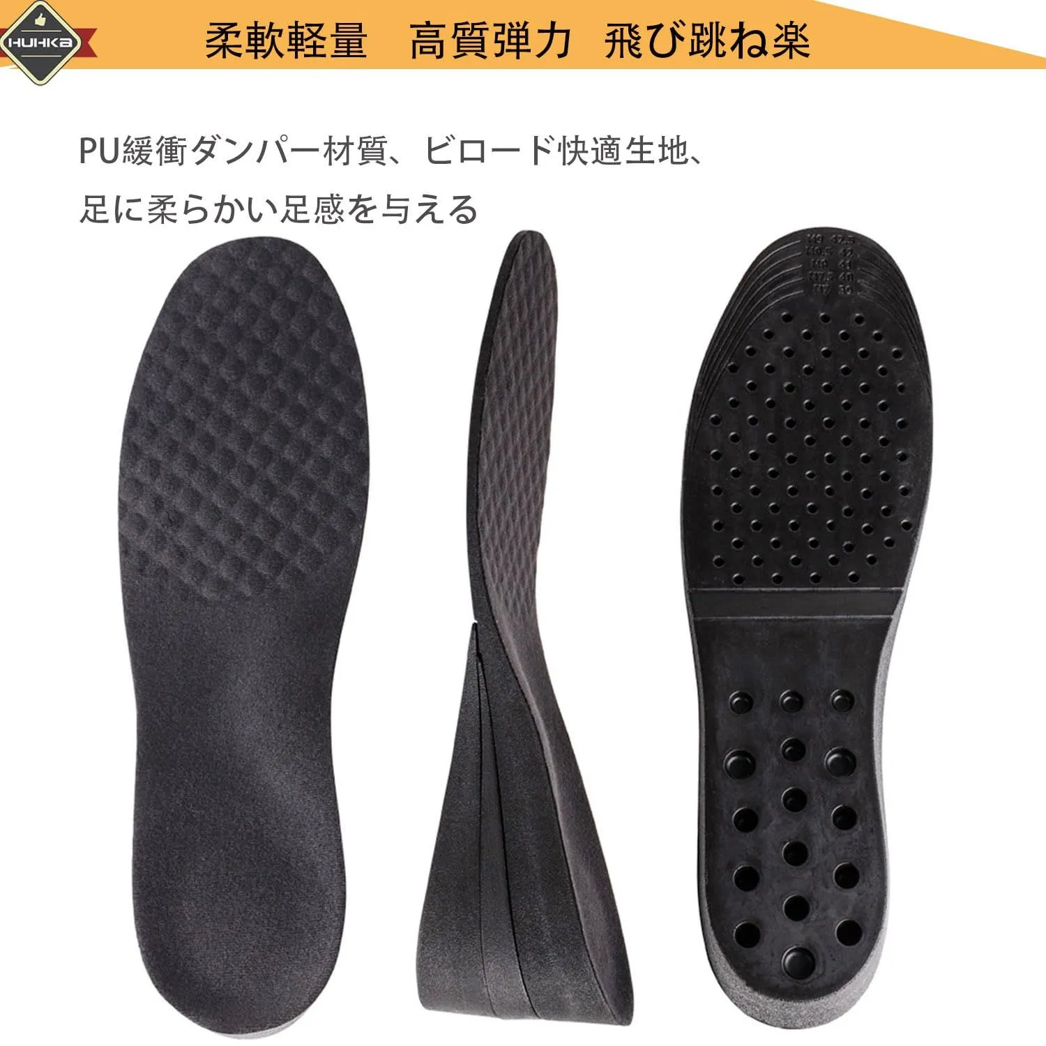 【サイズフリー】本来このインソール高さが3㎝で(3cm/1.5cm2段付き)、ご好みより高さに自由に組み合わせ、全部組み合わせたら、7.5㎝アップでき、またインソールの裏に刻印されたサイズおよびガイド線通りにハサミで簡単に調整でき※インソールの高さが選びたびに、インソールを入れた靴にかかと部分は3㎝-4cm間に保留することがお勧めです。 最後までご確認頂き誠にありがとうございました。 上記をご確認頂き、ご購入いただけましたら幸いです。 何かご不明な点がございましたらお気軽にメッセージからお問い合わせ下さい。