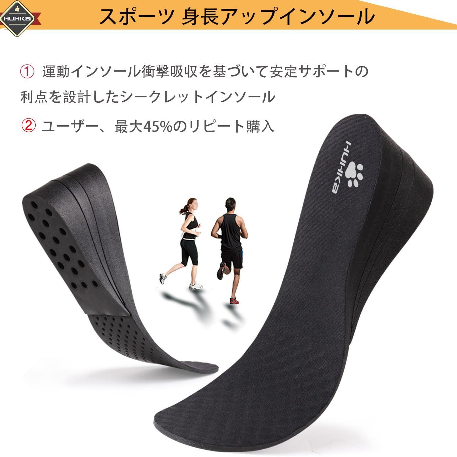 [7.5cm/4.5cm/3cm三つ高さ] 運動型インソール シークレット 男女兼用 [こっそり 身長アップ]中敷き 通気 衝撃吸収 日常用 ジョギング