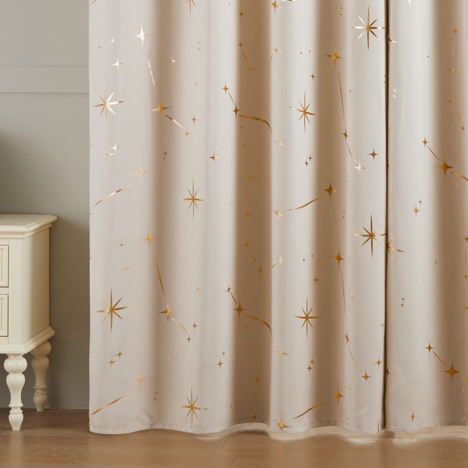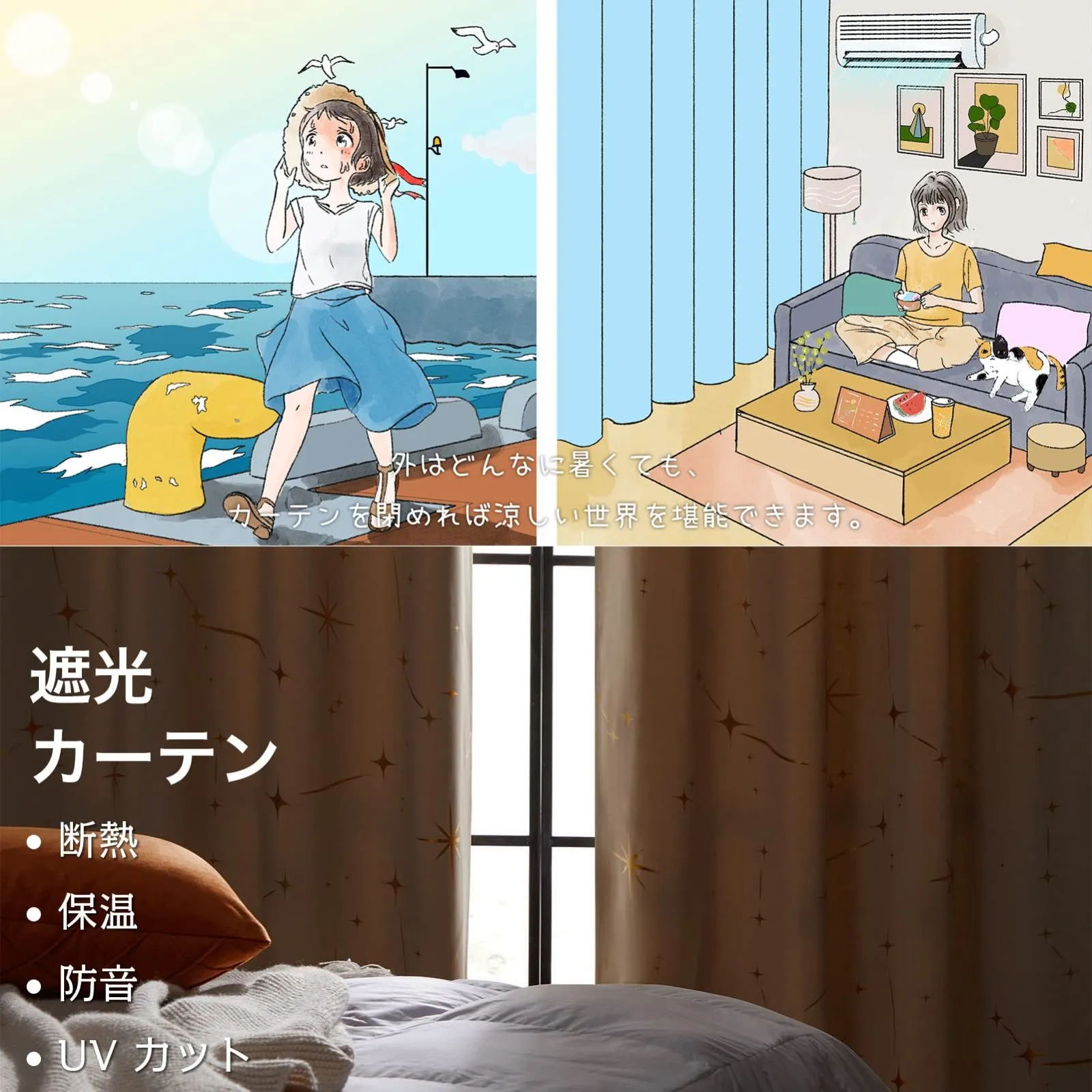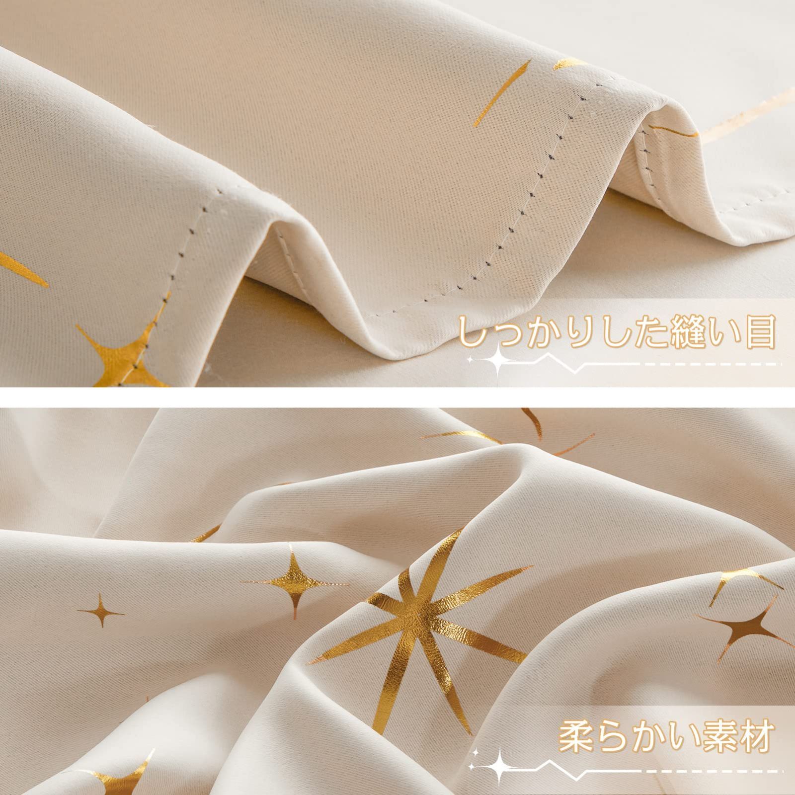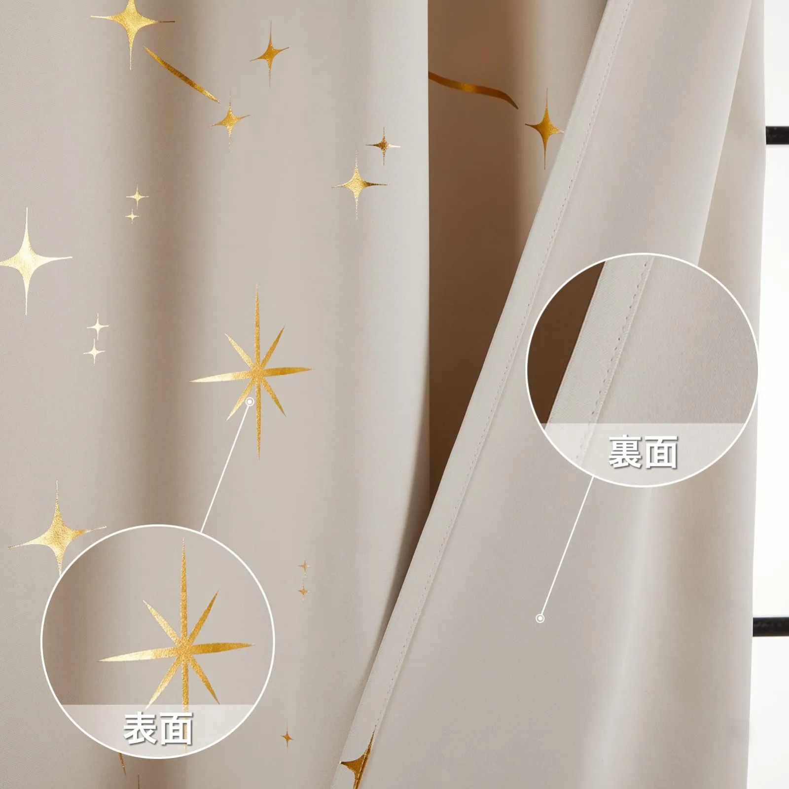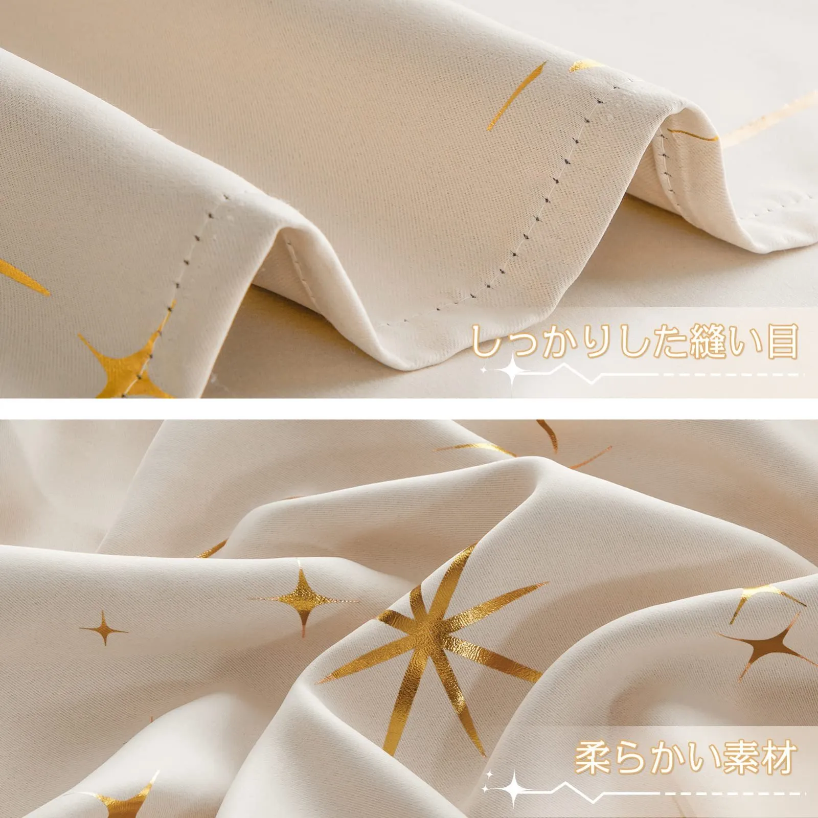 既成 カーテン カーテン 防音カーテン 寝室 断熱 省エネ カフェカーテン 小窓 ベージュ 断熱カーテン 2枚組 110cm丈 遮光カーテン 箔プリント 星柄 おしゃれ 遮光 Topfinel