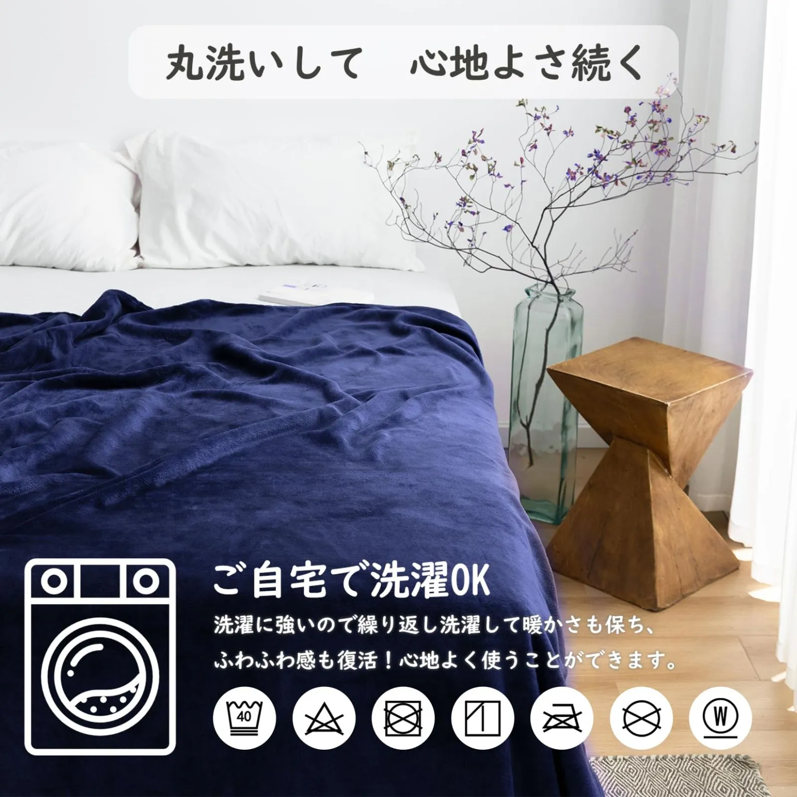 [丸洗いOK、いつも清潔」ご自宅で丸洗いでき、乾くのも早いから、万が一汚れてしまってもお手入れが便利です。洗濯に強いので、毛玉もありません。また、静電気防止加工が施されているので、乾燥した冬にはイヤなパチパチを軽減し、さらに心地よくおやすみいただけます。※静電気防止加工で、完全に除去できるものではございません。