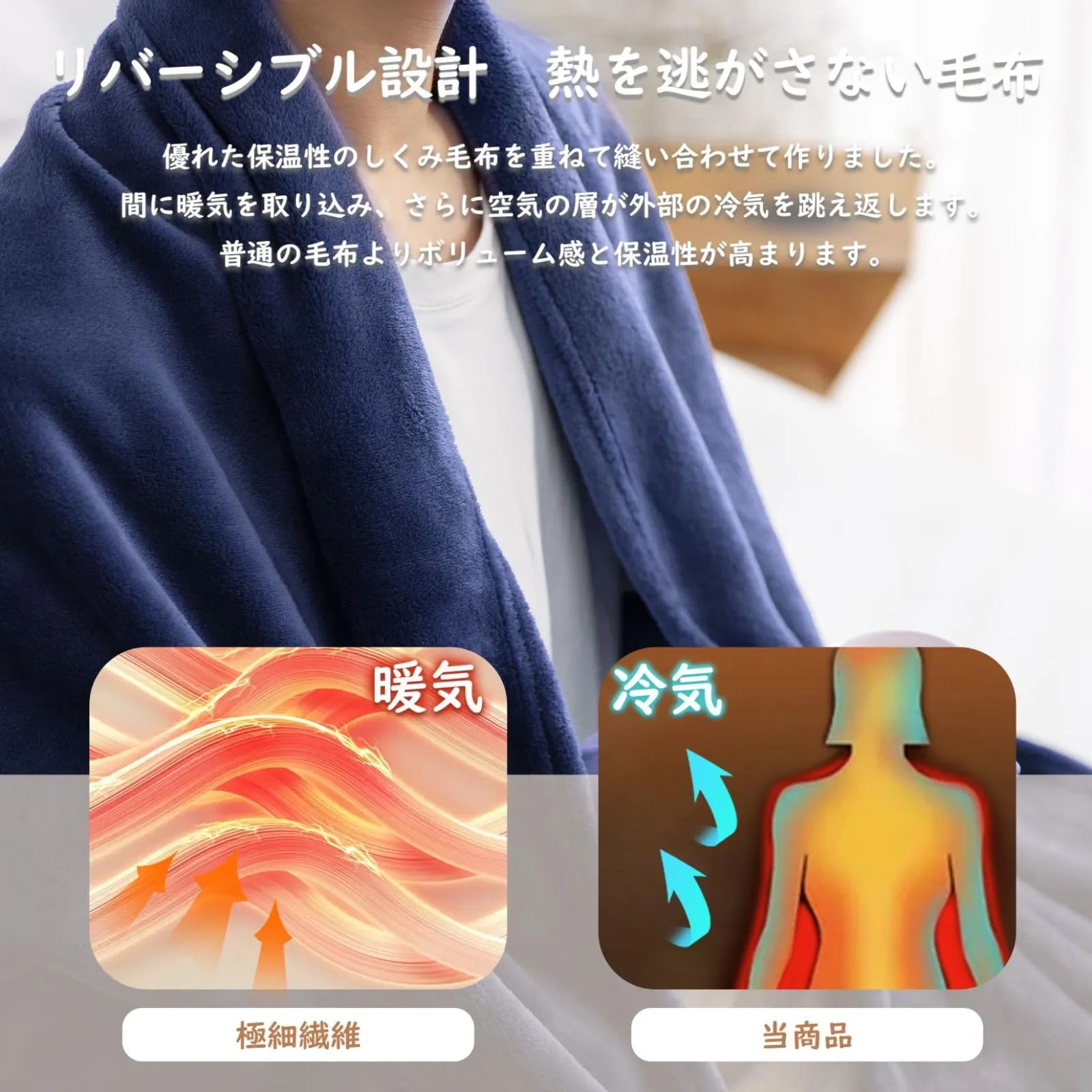 「両面使える、四季適用」軽く体に沿うようにフィットし通年使用できます。リバーシブルなブランケットで、高級感の光沢が溢れる、冬はお持ちの掛布団の内側でインナーケットとして、夏場はエアコンの冷えすぎの調整に使えるアイテムです。