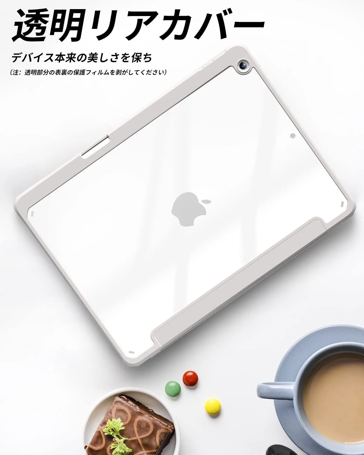 【材料・透明バックカバー】 ケースの表面はPUレザー素材を利用して、軽量、超薄を備えます。ポリカーボネート素材を採用している透明バックカバーは汚れや傷つけなどを防止するだけでなく、iPad本体の色と美しさも活かせます。透明バックカバーの枠は柔軟な TPUを採用して、取り付けも簡単にできます。フロントカバー内部材質はマイクロファイバーで、摩擦によって発生する傷を抑え、液晶画面を保護しきれいに保ちます。(注:透明部分の表裏の保護フィルムを剥がしてください)