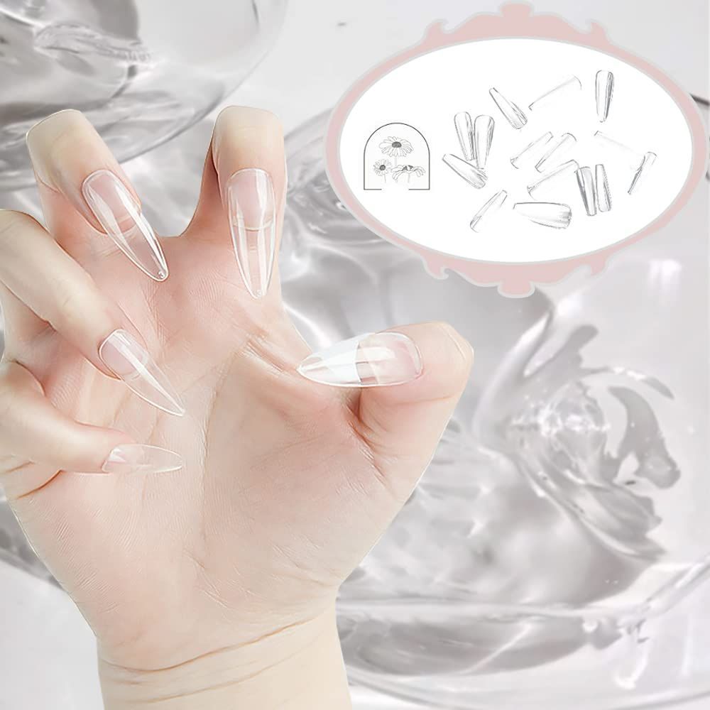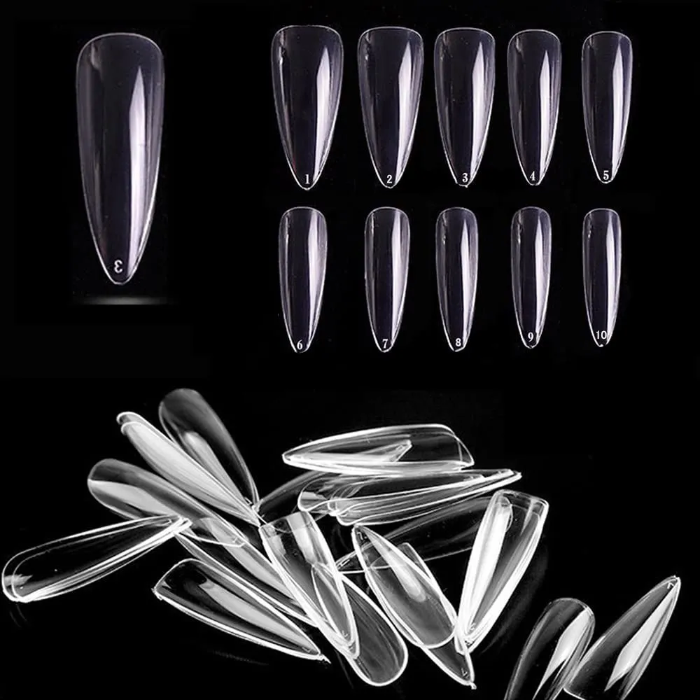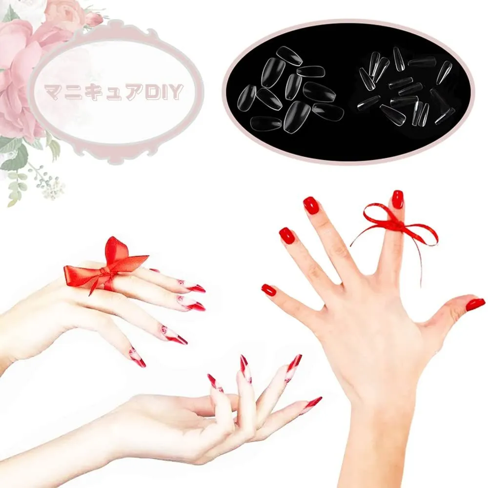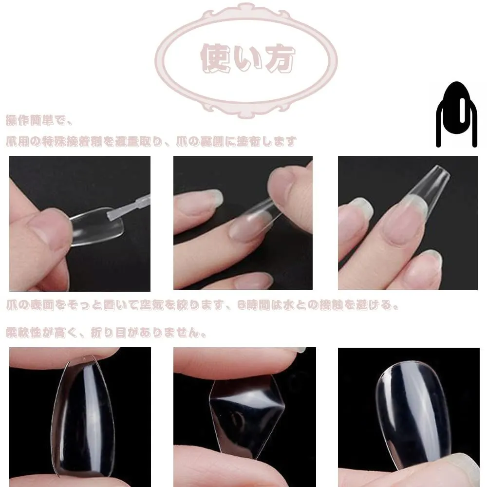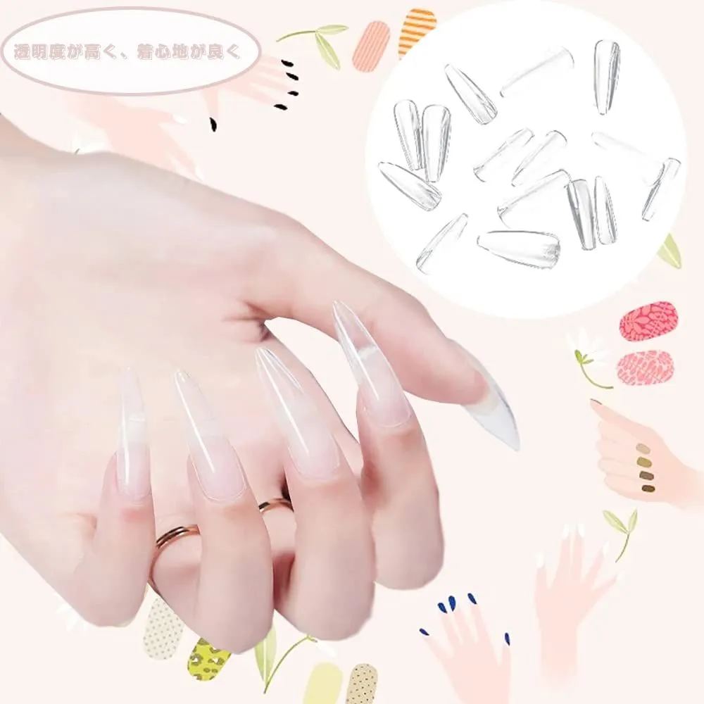 ネイルチップ 透明な偽の爪 500PCS 長い人工爪 フルカバー つけ爪 クリア 無痕 マニキュア DIYネイル 業務用 ネイリスト練習用 無地 透明 超薄型で シンプル 結婚式 パーティー 10種のサイズ