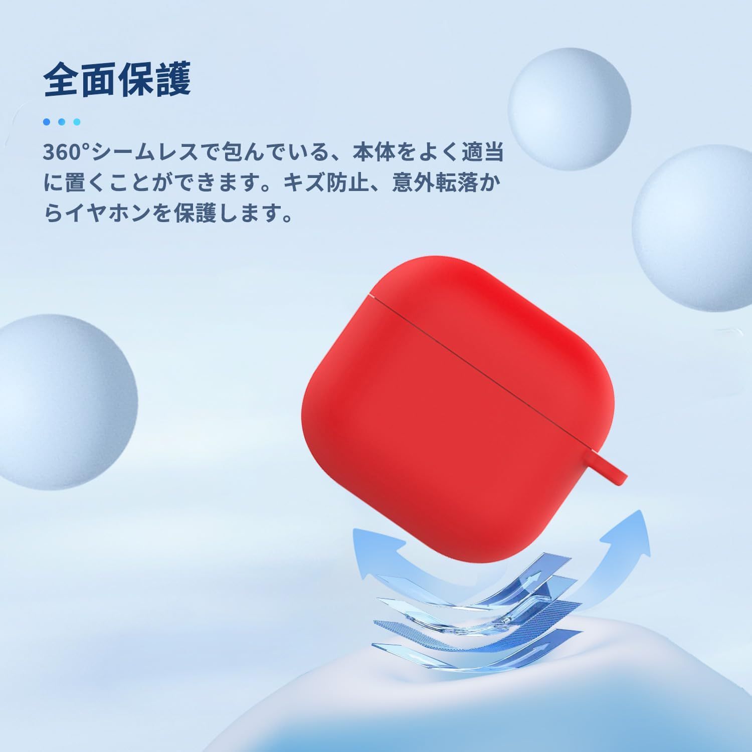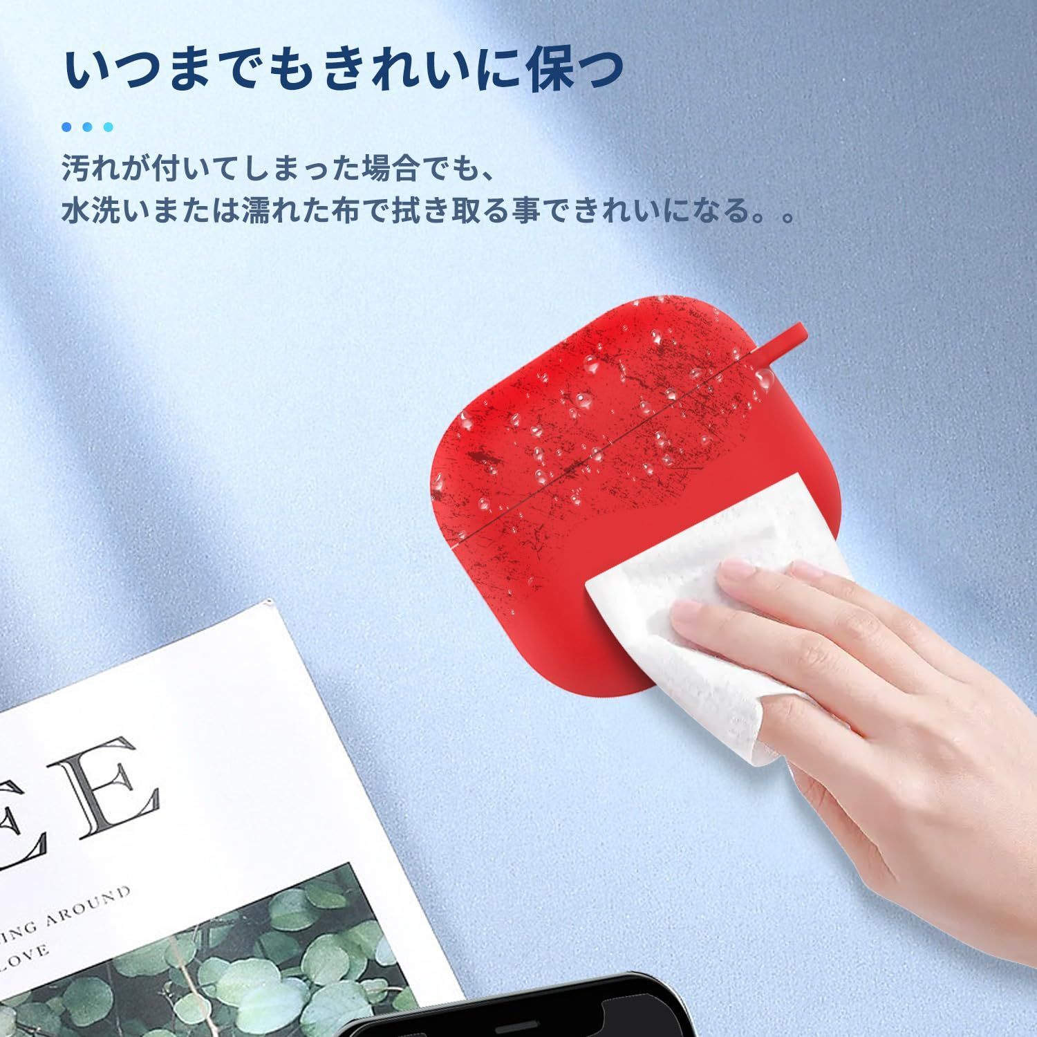 【しっかり保護 】衝撃を吸収できる高品質シリコン素材を採用することで、触り心地が良いだけでなく、優れた保護力を発揮します。お使いのair-pods4を落下による衝撃や擦り傷からしっかり保護します。また柔軟性も高く、汚れや指紋がつきにくいです。少し汚れがついてしまった場合でも、水洗いまたは濡れた布で拭き取ることできれいになります。