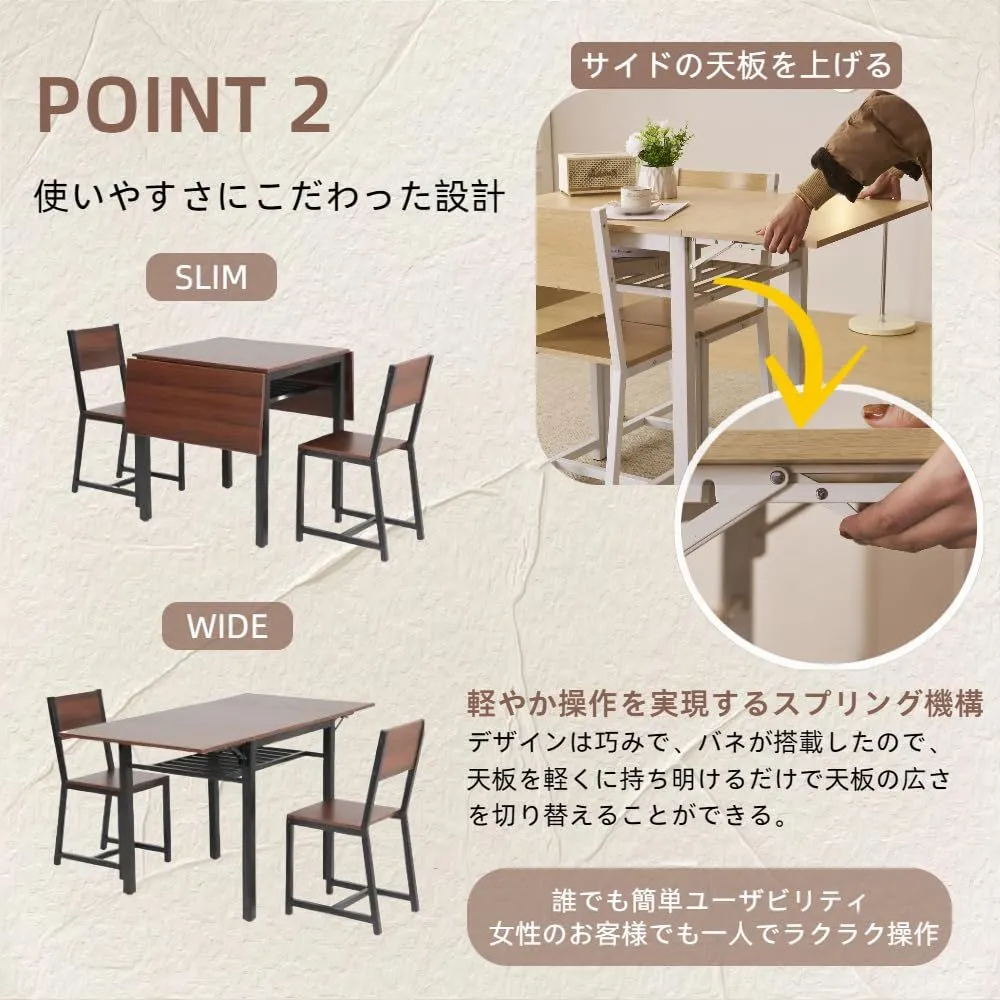 【使いやすさにこだわった設計】デザインは巧みで、バネが搭載されているため、天板を軽く持ち上げるだけで天板の広さを調節できる。女性一人でも簡単に使えて、非常に便利!