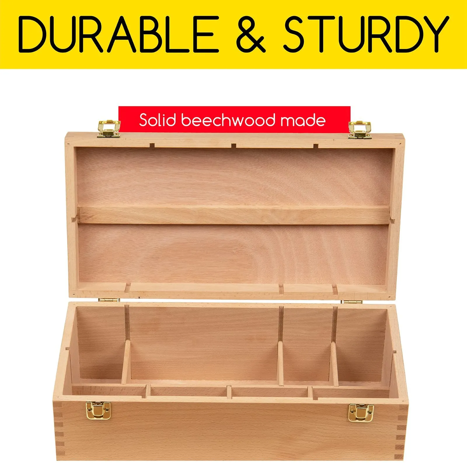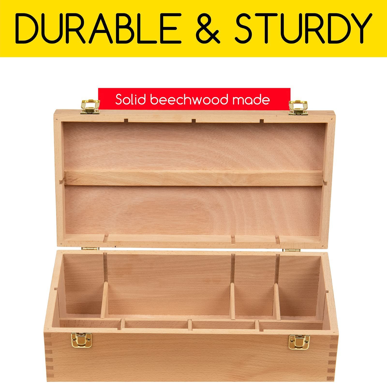 【高品質素材】木質芸術家の道具箱は、天然、軽量、堅牢なブナの木で作られている。二重金色の錆止め金具は使いやすく、画架箱を完璧にロックすることができ、芸術品は永遠に落ちません。ハンサムな革のハンドルは耐久性があり快適で、持ち運びに超便利です。