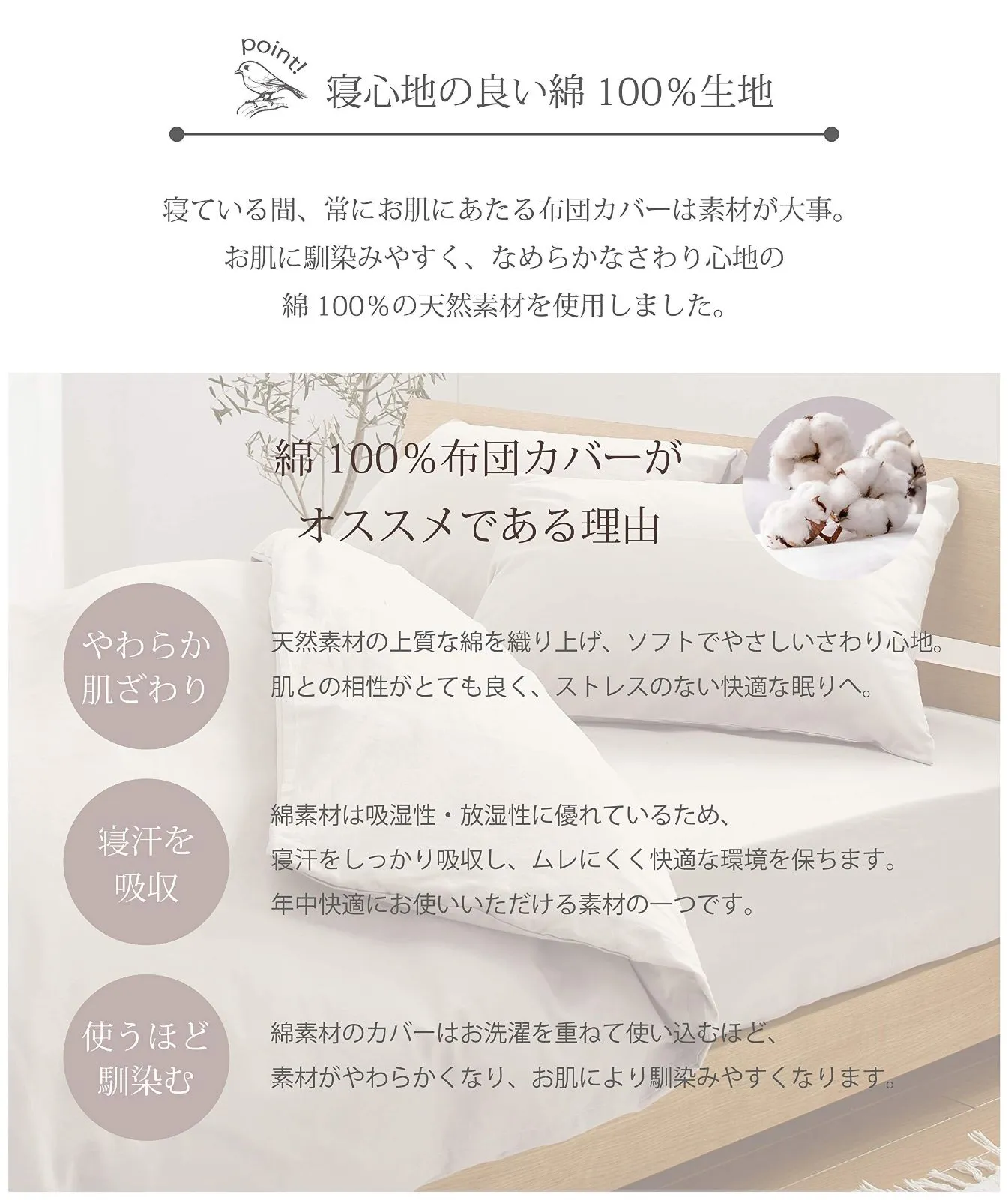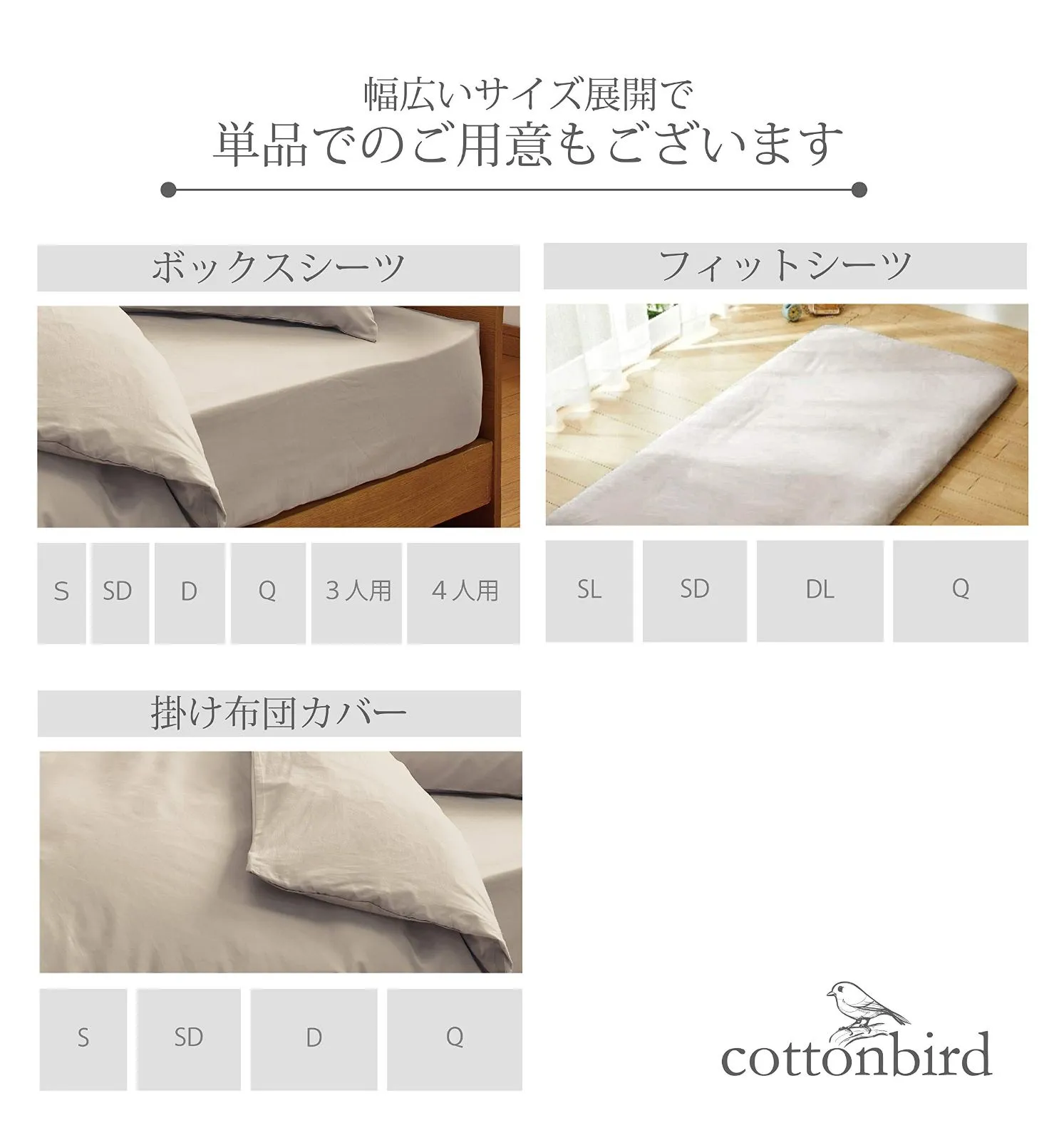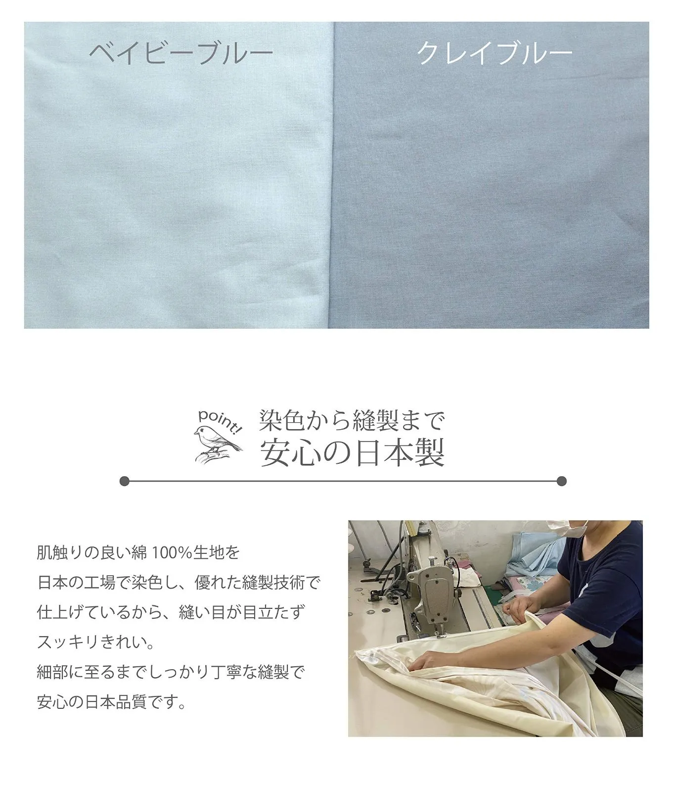 ※ご使用のモニターによっては、商品画像等の画面表示上の色合いと、実際の商品の色が異なる場合があります。ご了承ください。 肌触りの良い日本製の綿100%の生地を使用したベッドウェアです。 シーツはゴム式ですのでお一人で簡単に掛けやすく、どんなお布団やお部屋にも合うお色味をご用意! 最後までご確認頂き誠にありがとうございました。 上記をご確認頂き、ご購入いただけましたら幸いです。 何かご不明な点がございましたらお気軽にメッセージからお問い合わせ下さい。