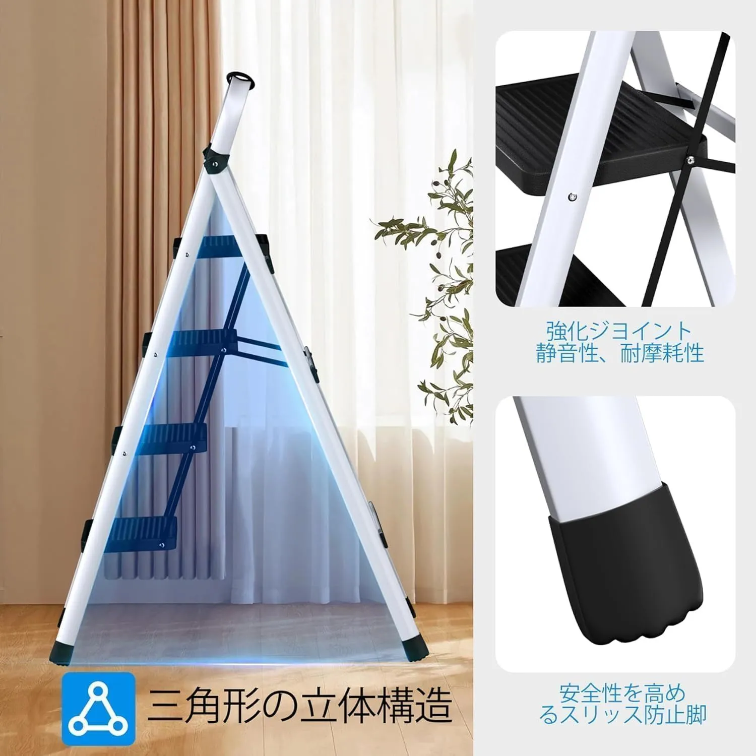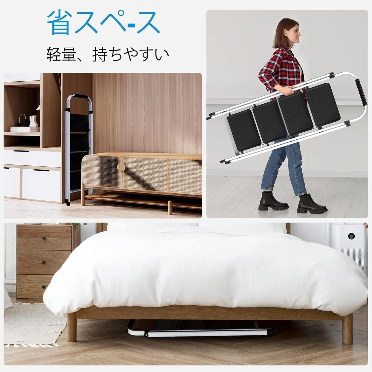 【折りたたみ設計】:踏み台 4段は、コンパクトに折りたたむことができます。収納スペースを節約し、持ち運びも簡単です。