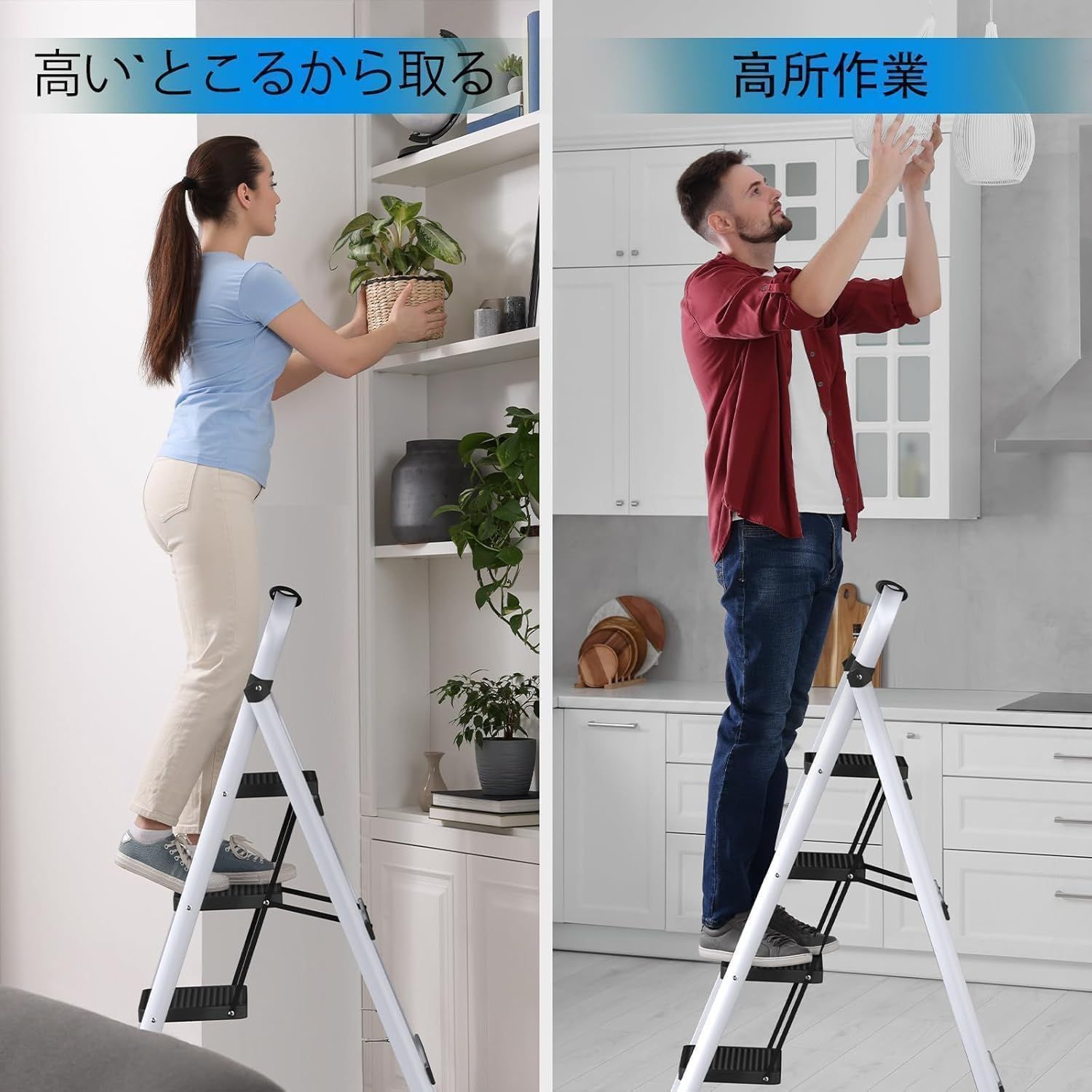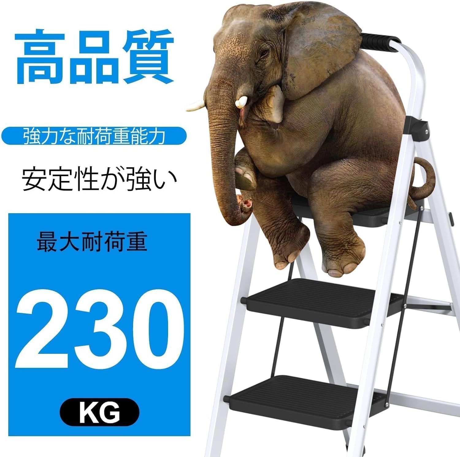 【軽量&耐荷重】:脚立は軽量なのにもかかわらず、最大230KGまで耐えることができます。頑丈な作りで使い勝手も抜群です。女性は簡単に持ち運びたり折ったりすることもできます。