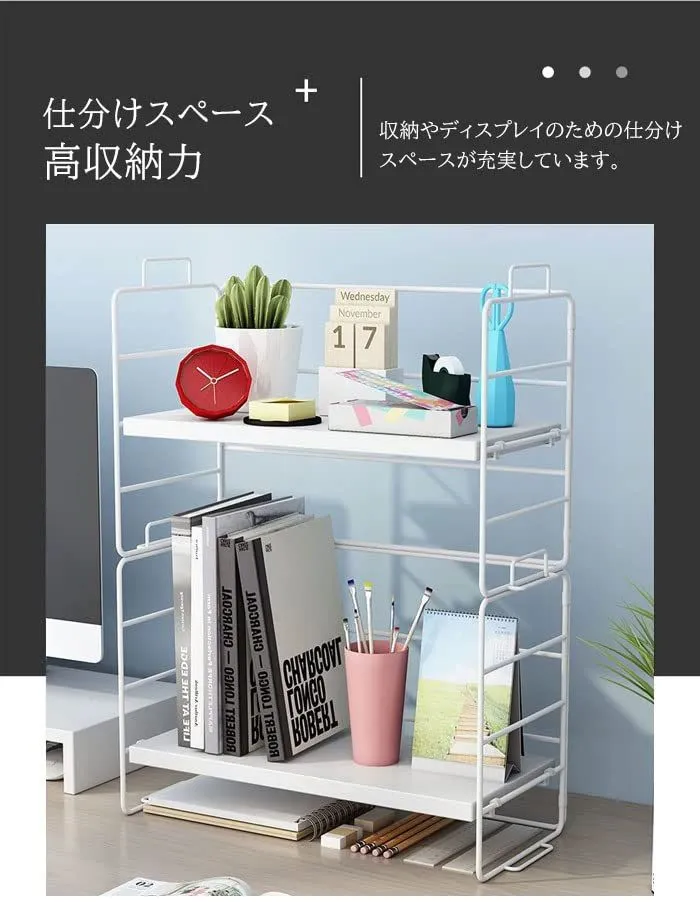 【即日発送】北欧 机上ラック 収納棚 テーブルラック本 棚 文房具 収納ラック 飾り シェルフ 小物置き 上置棚 整理 ラック 組立簡単 デスク収納 (棚板3枚 本棚 ウッド色棚板+白色フレーム) オープンラック