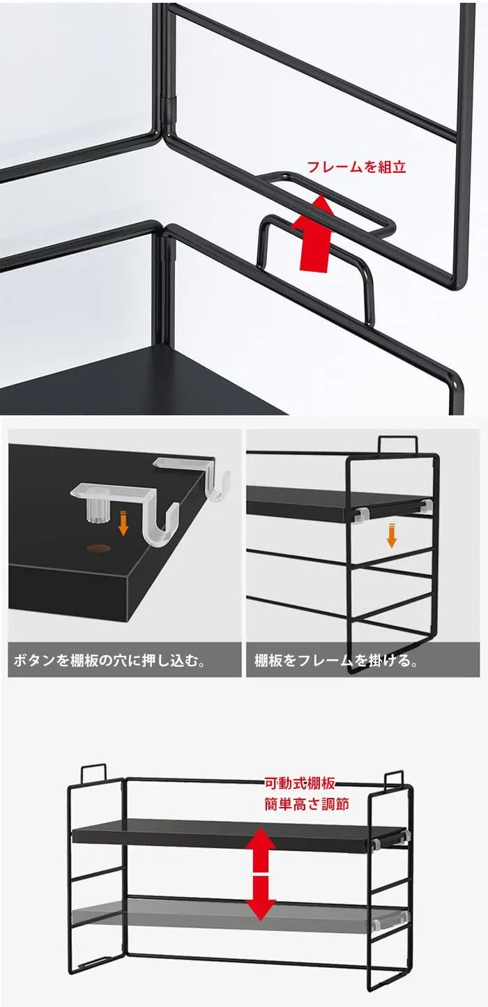 ●取付簡単 取付方法が簡単です。 商品ページの画像に取付方法がありますので、ご参照の程、お願い致します。商品サイズ:棚板1枚、棚板2枚:サイズ:370mm×240mm×165mm、棚板3枚:サイズ:370mm×460mm×165mm。 材質 エンジニアリングウッド 取り付けタイプ テーブルトップマウント 部屋タイプ キッチン, 寝室 棚のタイプ 階層型シェルフ 棚数 3 特徴 小物 商品の寸法 37奥行き x 16.5幅 x 46高さ cm 形状 立方体 表示を増やす 最後までご確認頂き誠にありがとうございました。 上記をご確認頂き、ご購入いただけましたら幸いです。 何かご不明な点がございましたらお気軽にメッセージからお問い合わせ下さい。