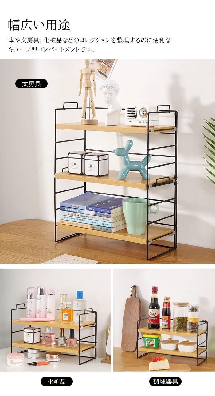 ●いろんな場所 本や文房具、化粧品などのコレクションを整理するのに便利なキューブ型コンパートメントです。 オープンシェルフは、使用頻度の高いものを簡単に収納することができます。 寝室、リビング、トイレ、玄関、洗面所、書斎、キッチンなどあらゆるところで大活躍。