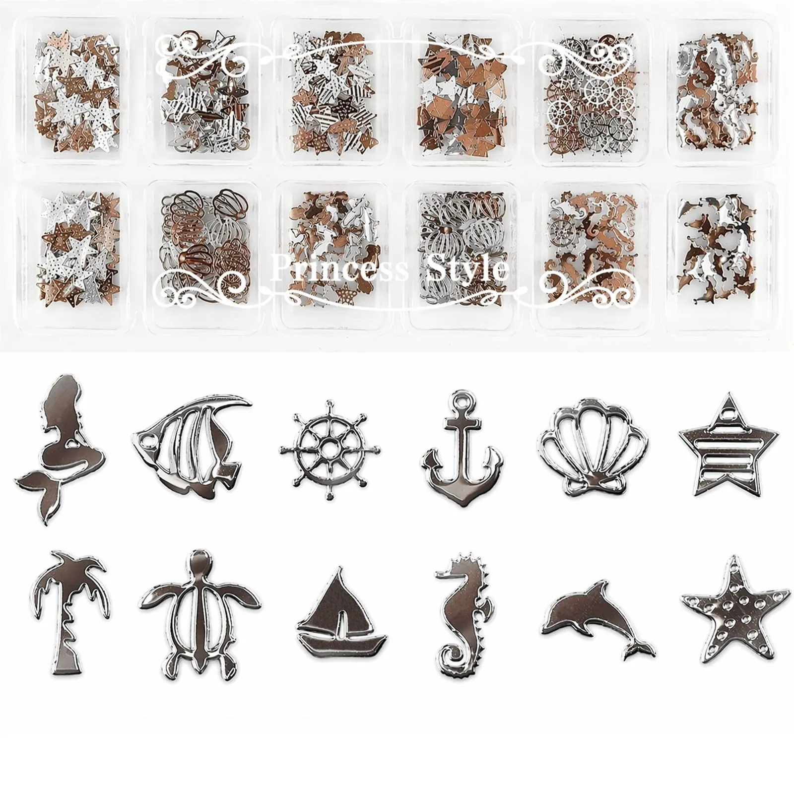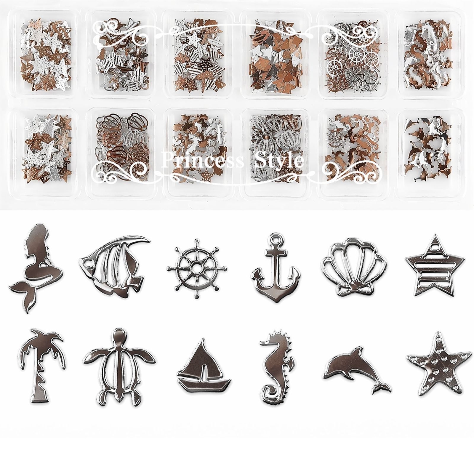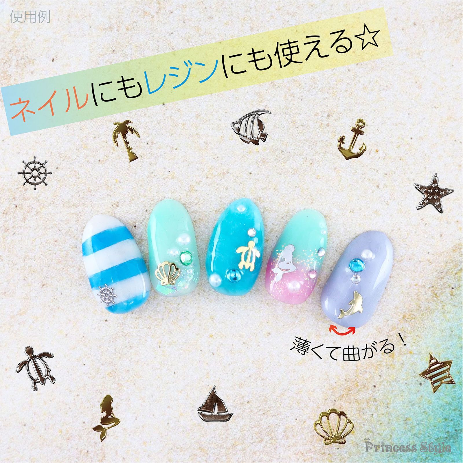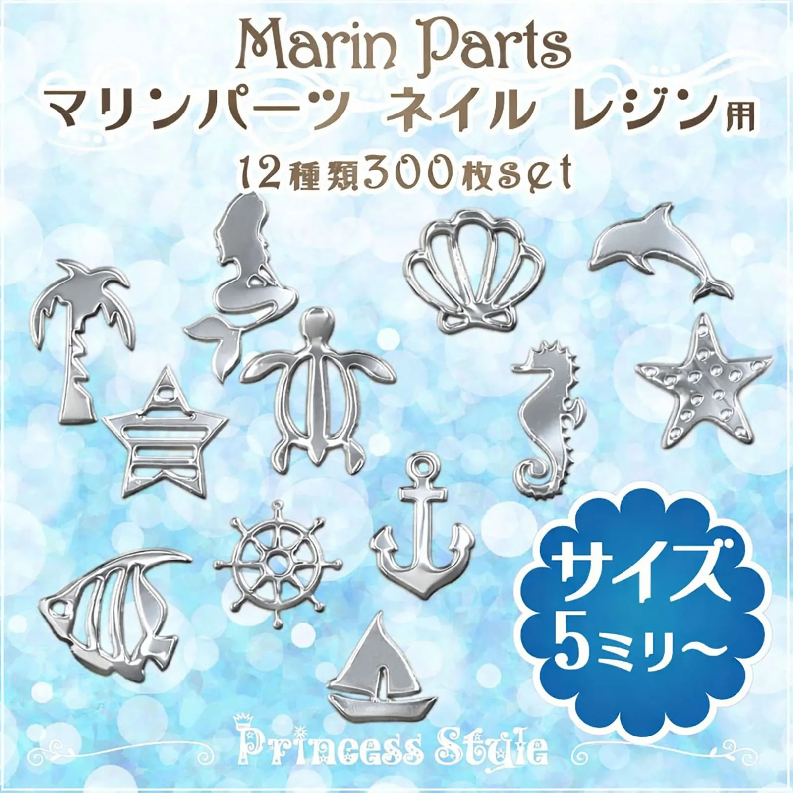 薄型アートパーツ ネイル レジン用 マリンパーツ 12種類300枚セット ★シルバー【 UVレジン レジンクラフト レジン レジン封入 封入 素材 材料 アクセサリー パーツ 封入パーツ レジンパーツ レジン材料 レジン素材 】