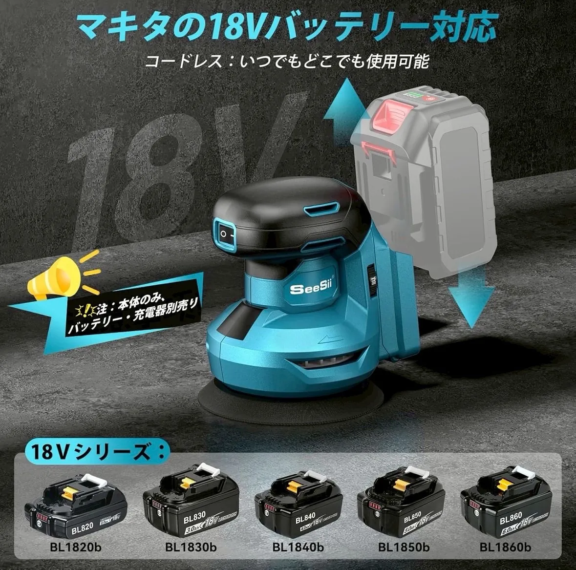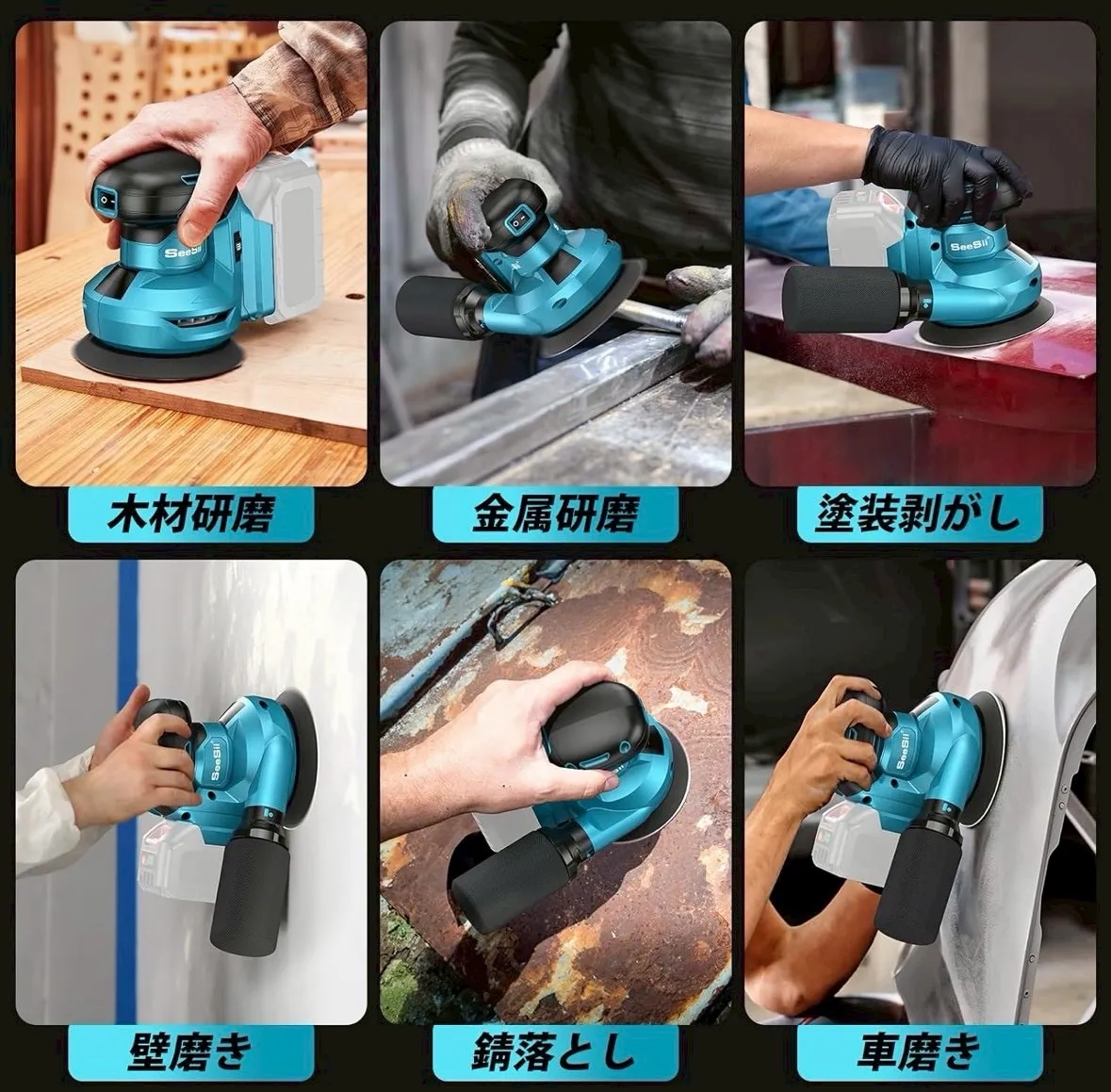 コードレス電動サンダー★マキタ18V対応 軽量 7段変速 集塵機能 DIY工具 木工 金属研磨対応 研磨機 小型 充電式