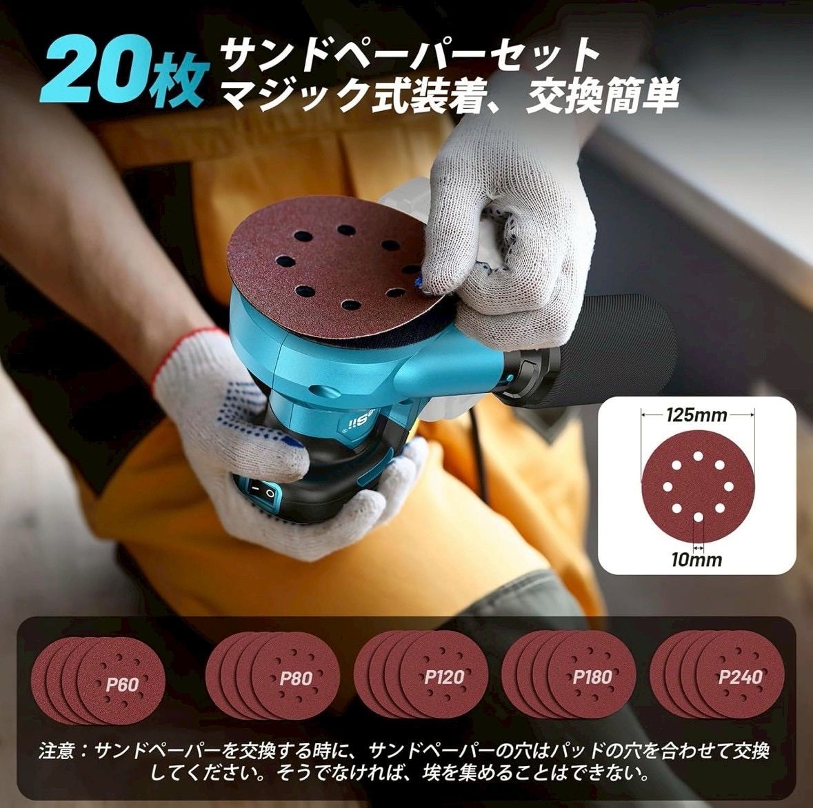 ●サンドペーパー20枚付属、マジックテープ式で簡単交換