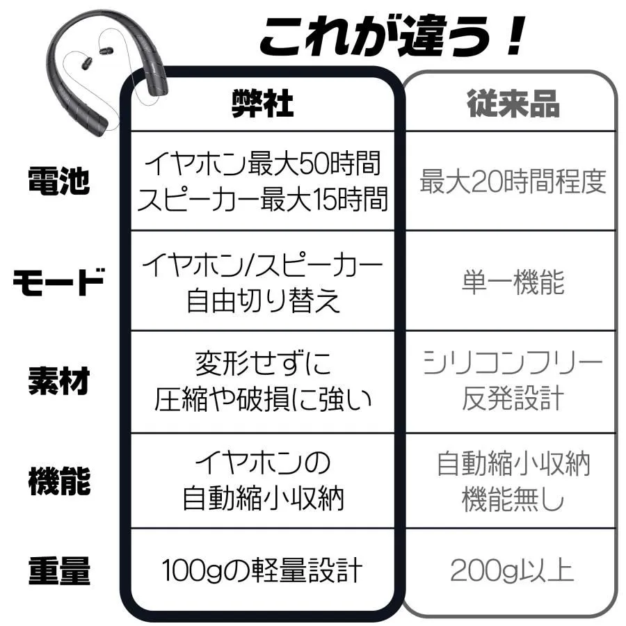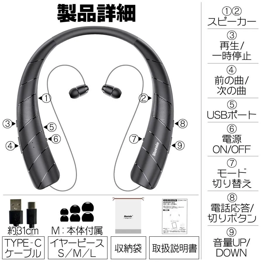 ネックバンド 首かけ 肩かけ スピーカー ブルートゥース 50時間連続使用可能 おしゃれ