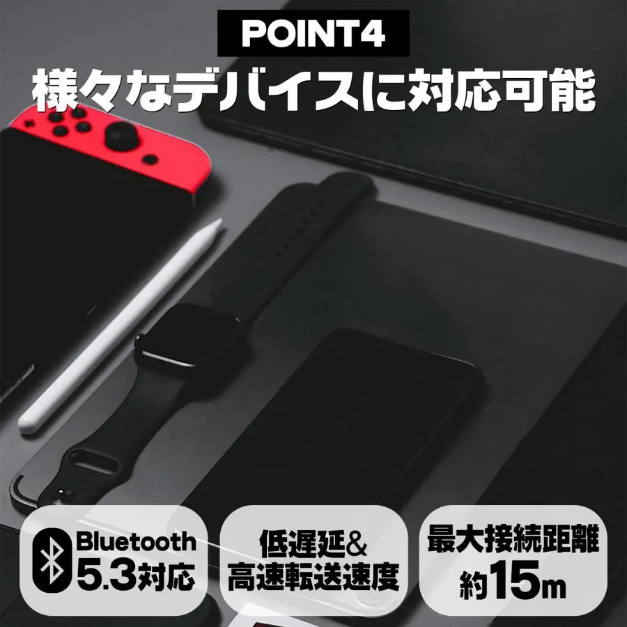 【Bluetooth接続】 Bluetooth5.3接続で有線の煩わしさを解消! スマートフォンやタブレット等、Bluetooth5.3に対応した デバイスとペアリングして音楽・動画・通話を楽しめます。