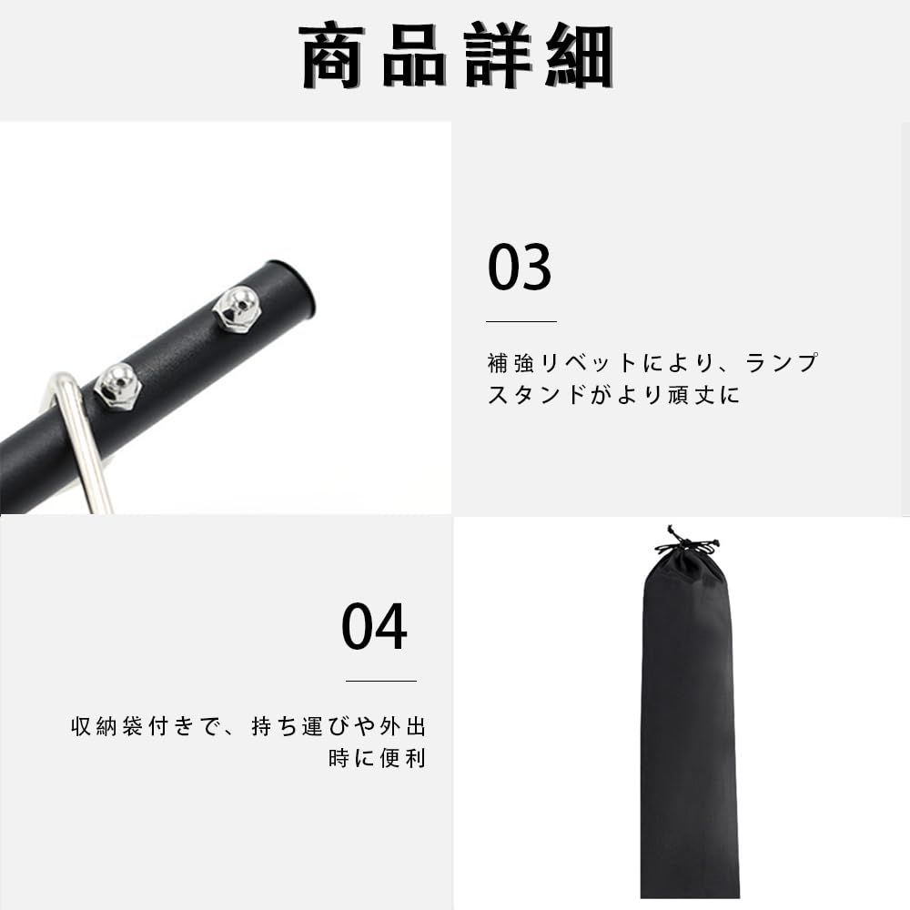 【高品質素材】高品質なアルミニウム合金製のランタンポールは、軽量でありながら強度があり、錆びにくく、耐久性にも優れています。安心して長期間使用できます。