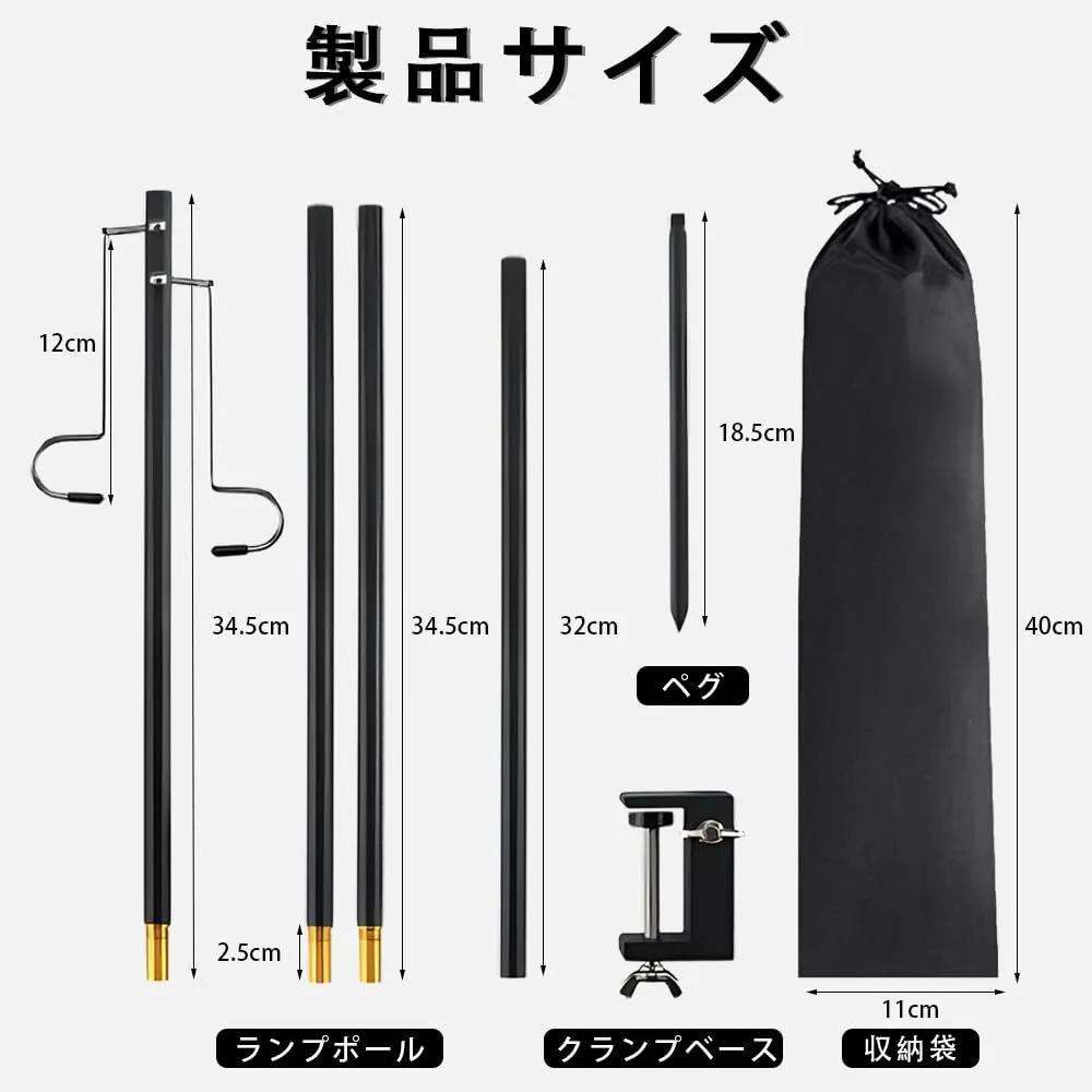 【セット内容】ランタンポール×4本、フック×2個、クランプベース×1個、ペグ×1個、収納袋×2個が含まれており、全ての必要なアクセサリーが揃っています。 最後までご確認頂き誠にありがとうございました。 上記をご確認頂き、ご購入いただけましたら幸いです。 何かご不明な点がございましたらお気軽にメッセージからお問い合わせ下さい。