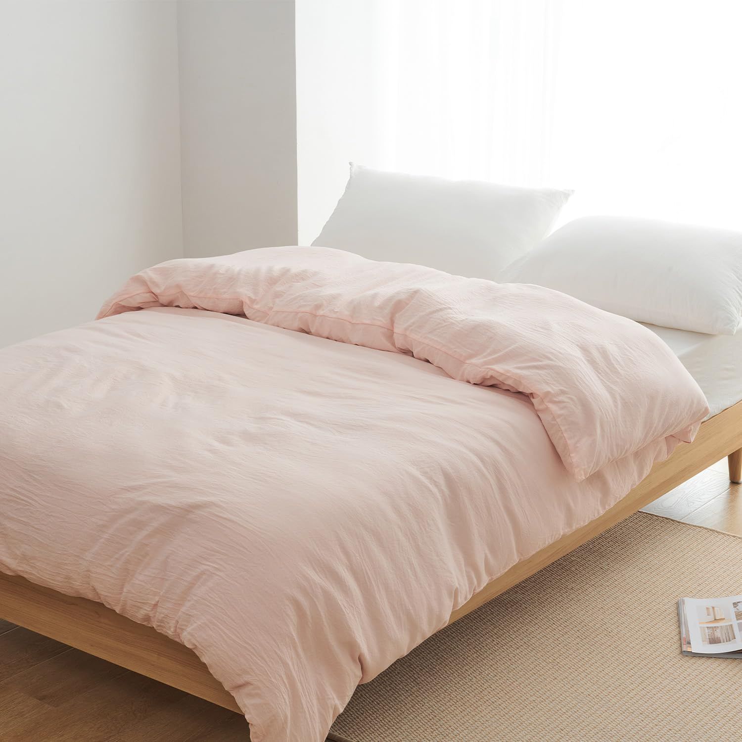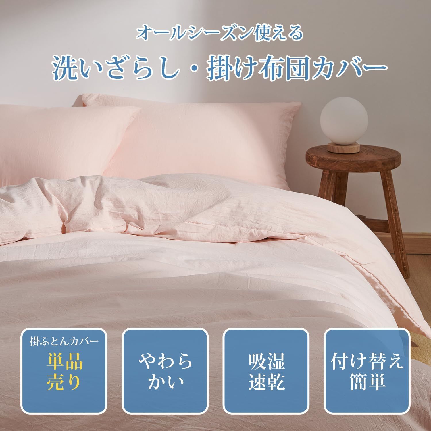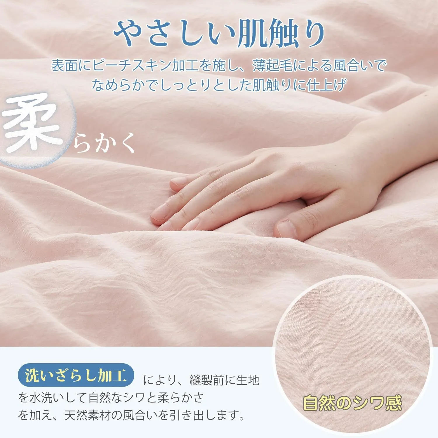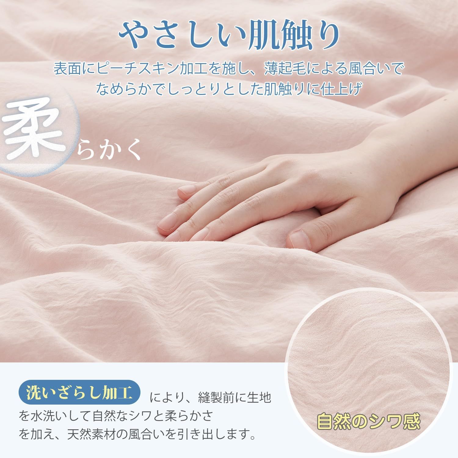 【新着商品】吸湿速乾 素肌にやさしい 柔らかい 洗いざらし しっとり ピーチスキン ダブル シワ加工 丸洗いOK オールシーズン 掛け布団カバー 布団カバー 掛ふとんカバー クモリ(Kumori) (ダブル・190X210cm ピンク)