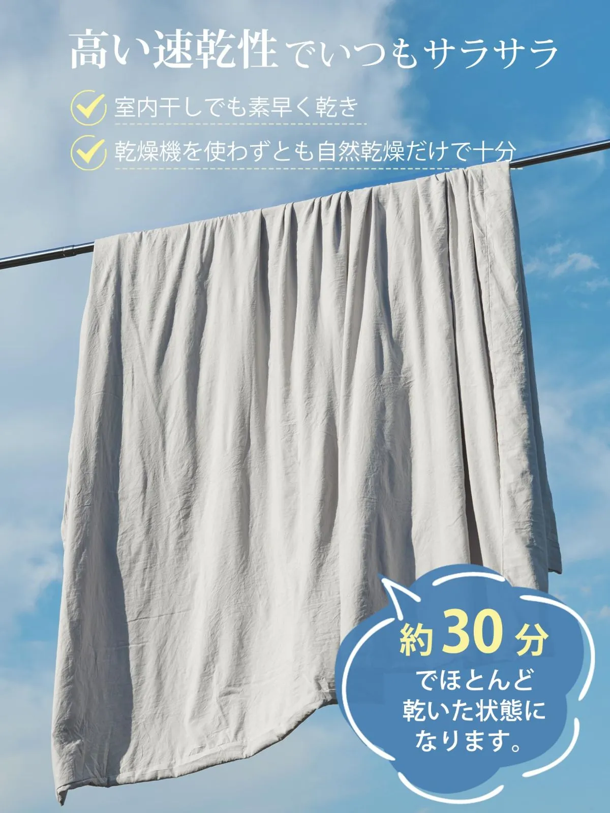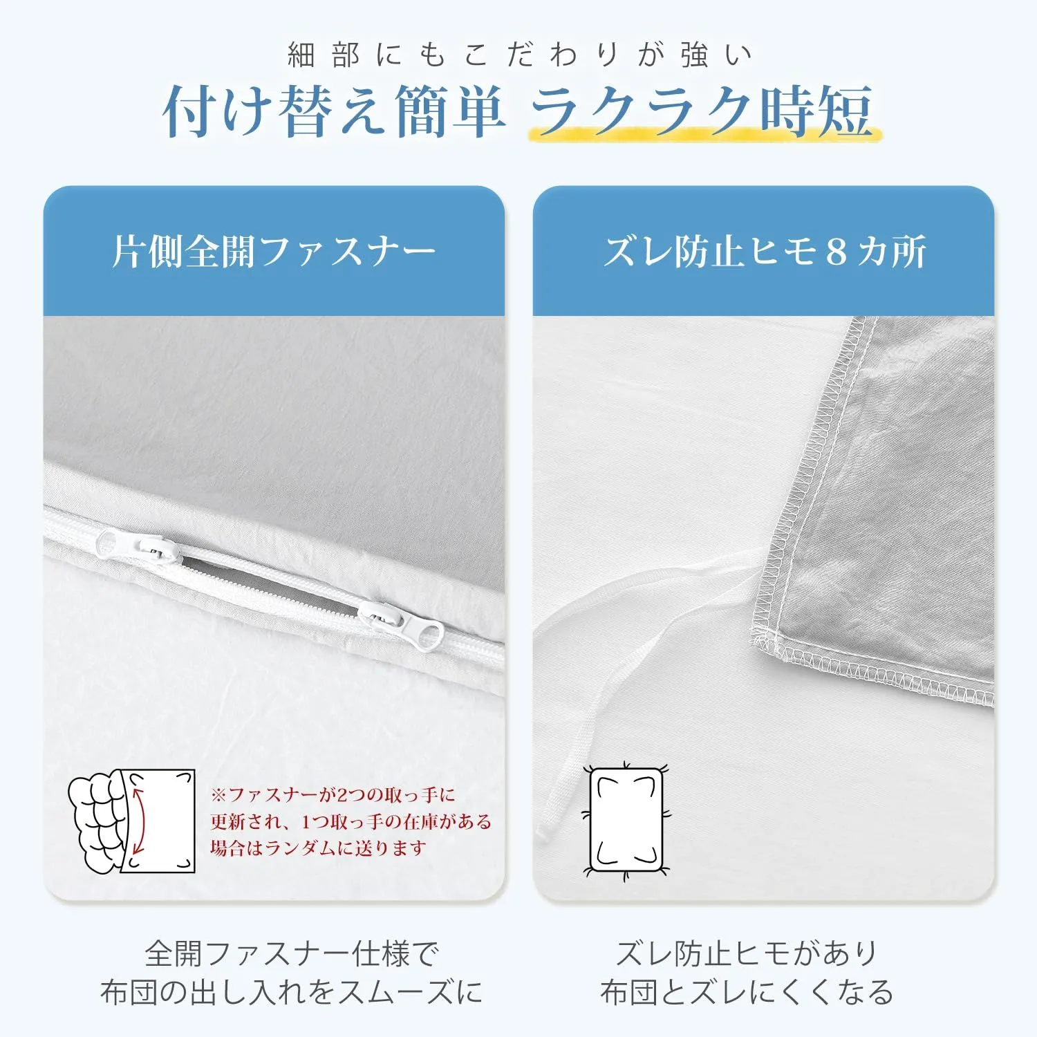 【商品情報】素材 -ポリエステル100%(ピーチスキン+洗いざらし) 仕様 -片側に全開ファスナー使用・布団留めひも8ヶ所付き 生産国 -中国