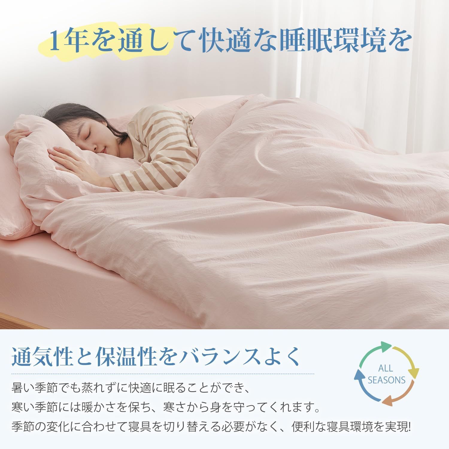 【季節を問わず】優れた吸湿性と通気性で、汗でもベタつかないサラサラ感を保ちます。肌に触れるとしっとりして気持ちよく、毎日快適に眠れて、一年中お使いいただけます。