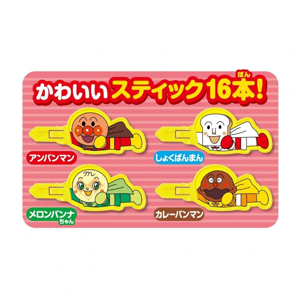 アンパンマン、しょくぱんまん、カレーパンマン、メロンパンナちゃんの4種のスティックを本体の穴に差し込もう。