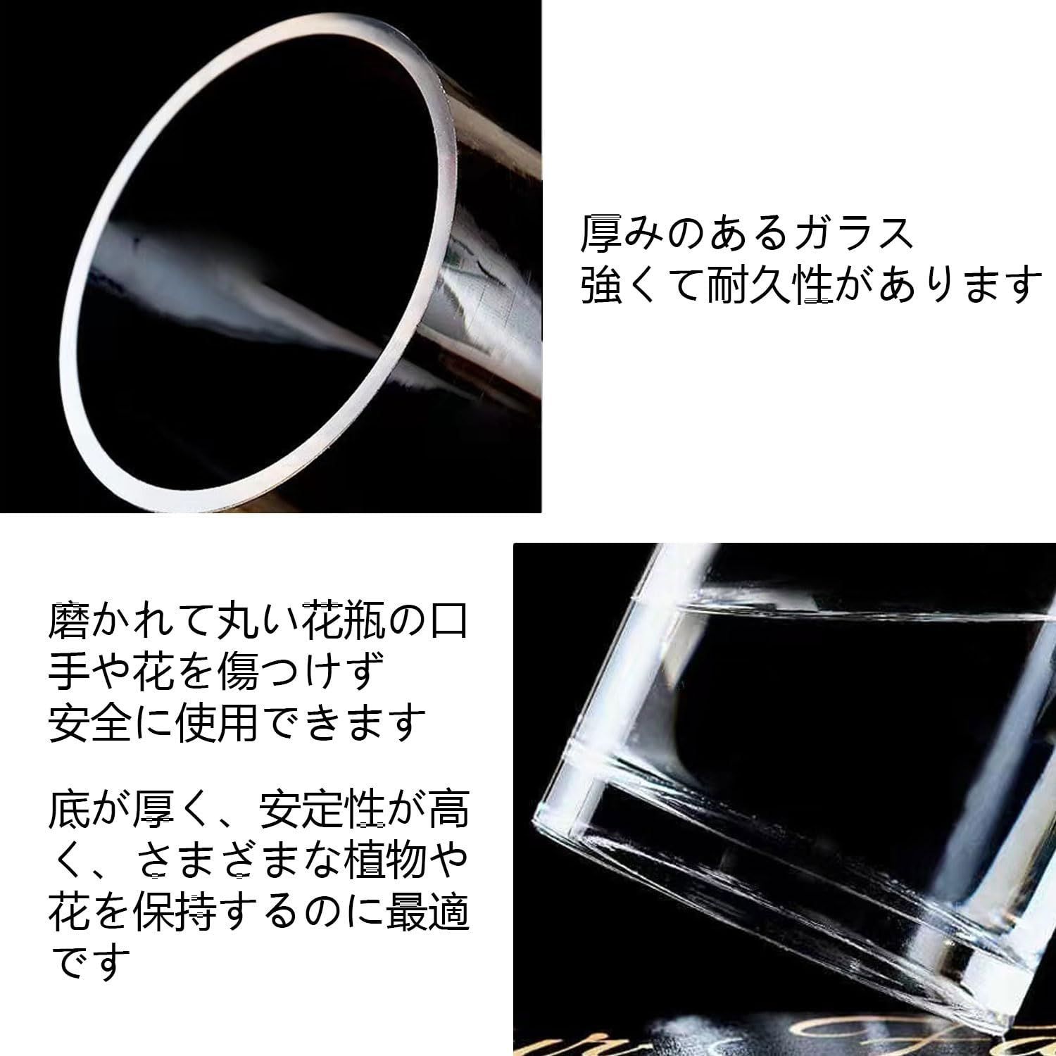 【安定感のあるフォルム】手作りで、滑らかで平らな、厚みのあるガラス、エレガントで頑丈な、高品質の花瓶です。