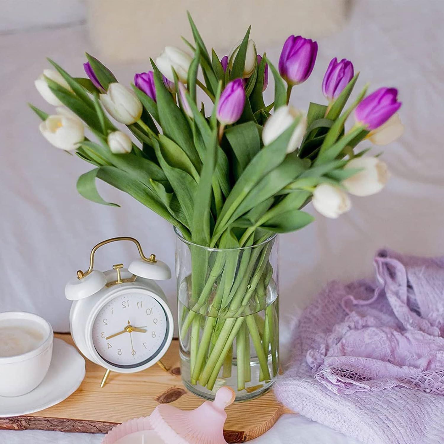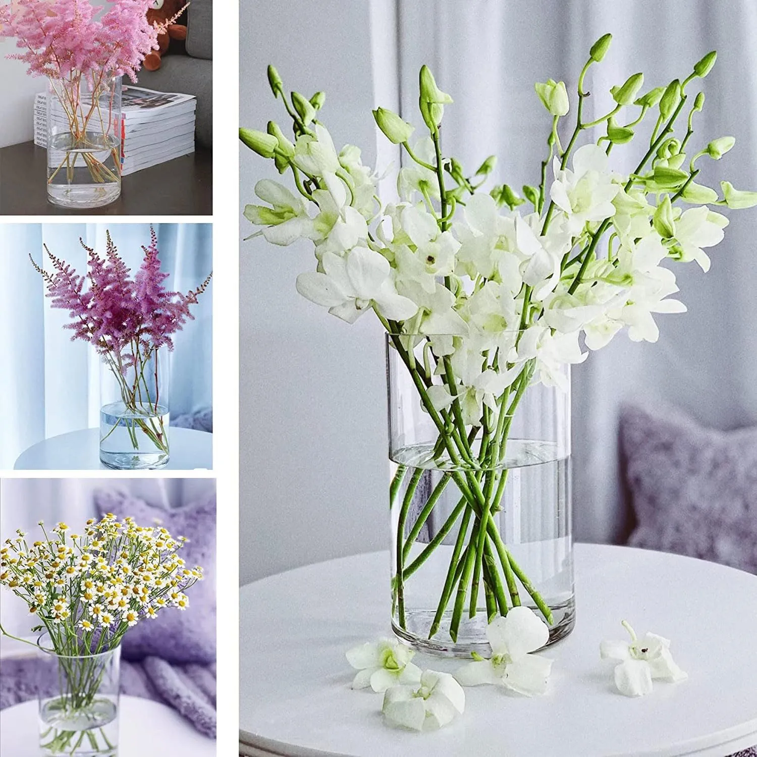 DARENYI ガラス花瓶 透明 高さ20cm 直径10cm 花器 -フラワーベース クリア おしゃれ シンプル 北欧 リビングルーム、ベッドルーム、オフィスの装飾に適しています