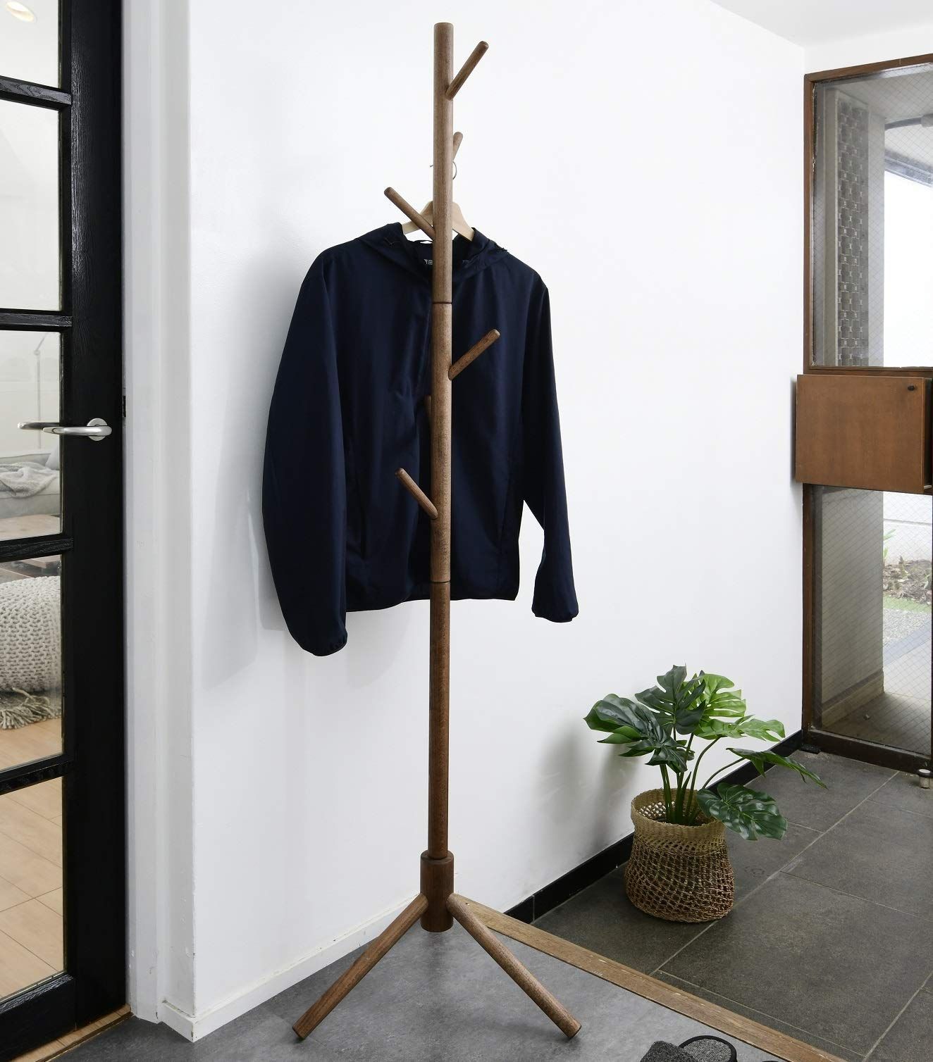 【ブナ材使用の木製ハンガー】高級ブナ材を使用した木製のポールハンガーです。お部屋にもなじみやすい天然木のナチュラルな色合いです。