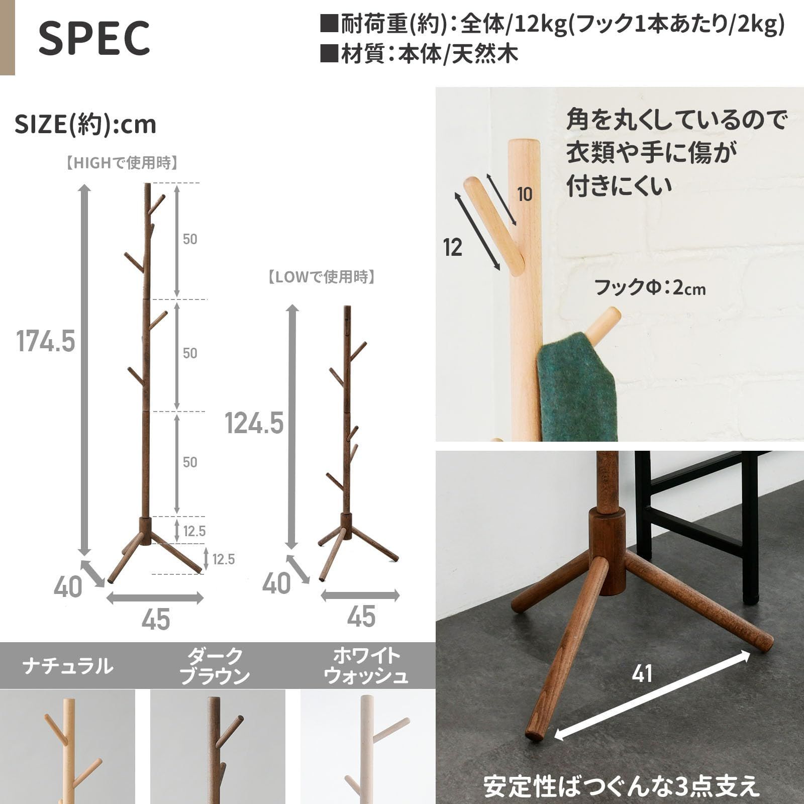 ●東証プライム(株)山善で扱うすべての山善商品は、自社もしくは第三者機関において、JIS規格に基づいた品質試験を行っております。 山善「高さが変えられる木製ポールハンガー STPH-6」