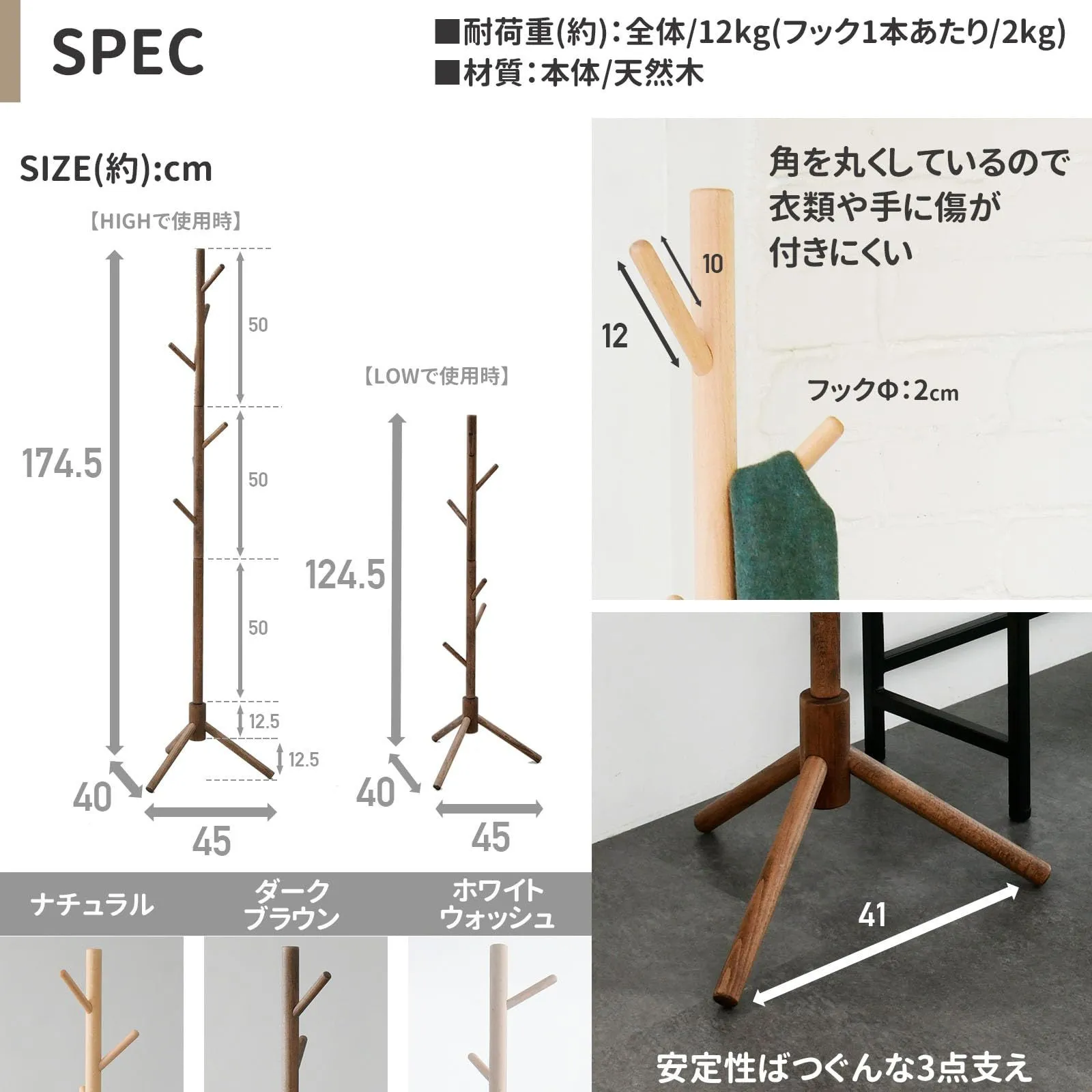 ●耐荷重:フック1本あたり2kg