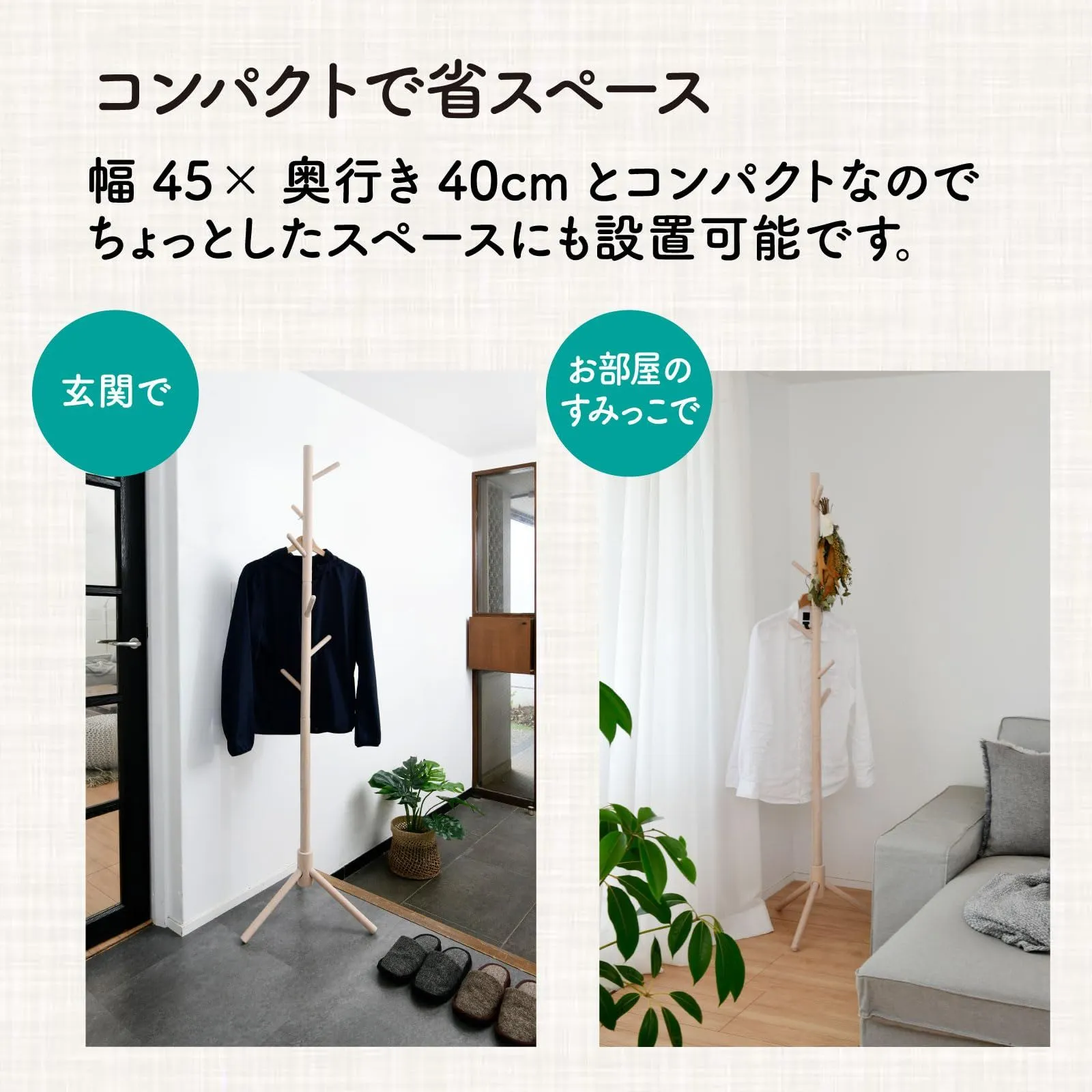 【コンパクトで省スペース】幅45×奥行40cm なので、お部屋のわずかなすき間や玄関などちょっとしたスペースにも設置可能です。