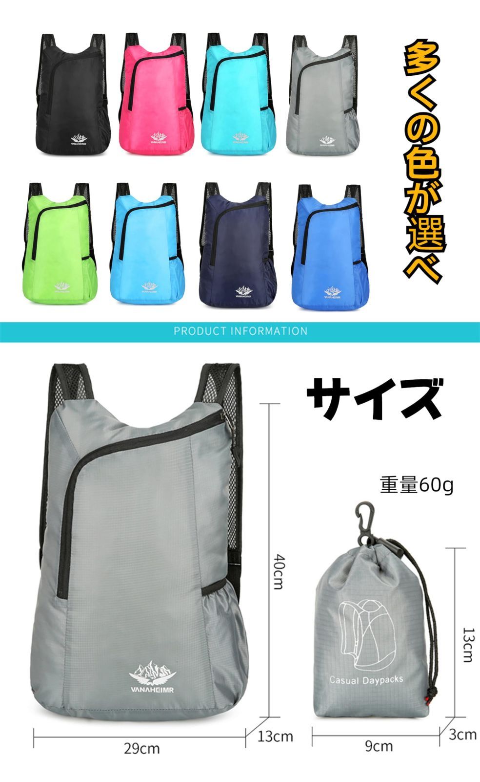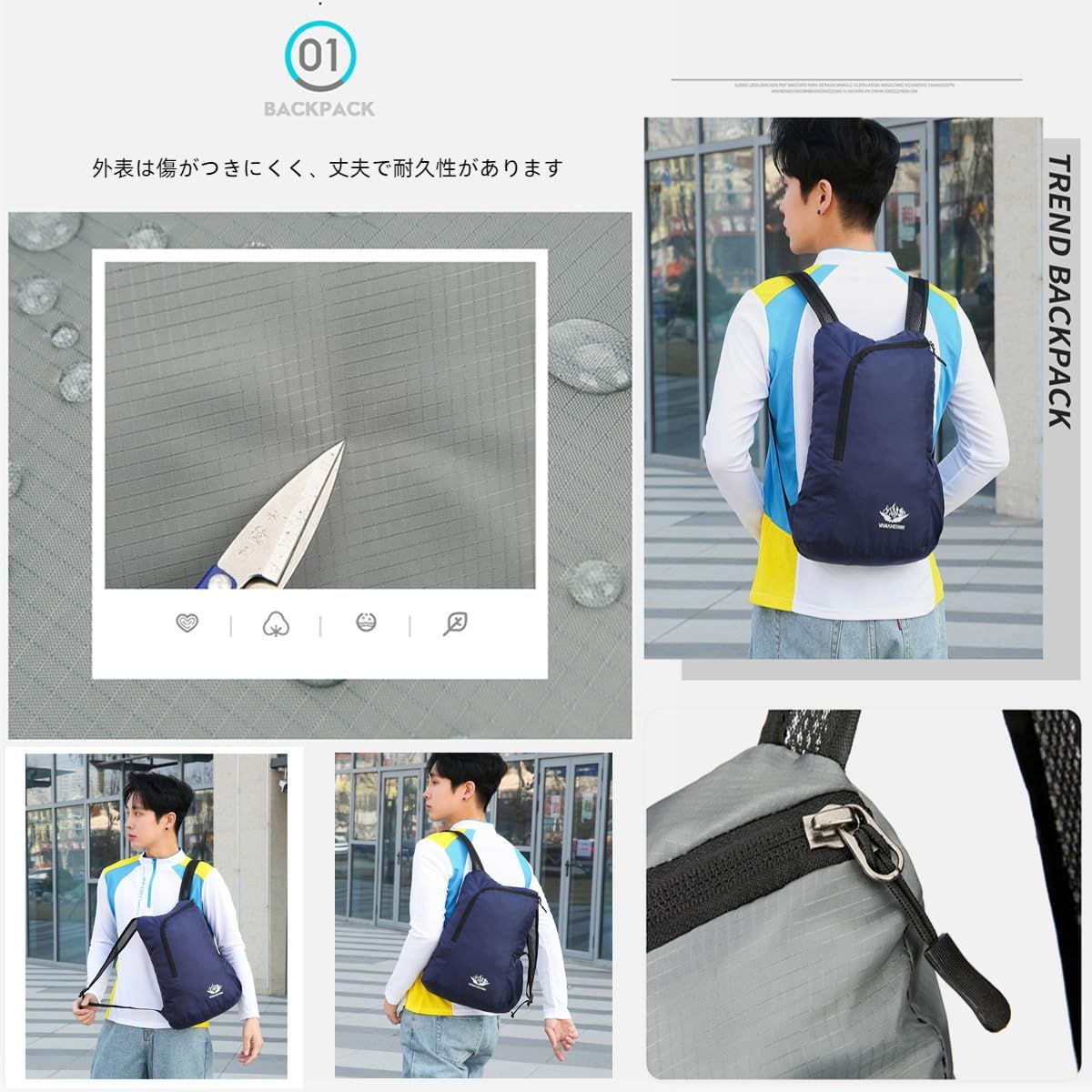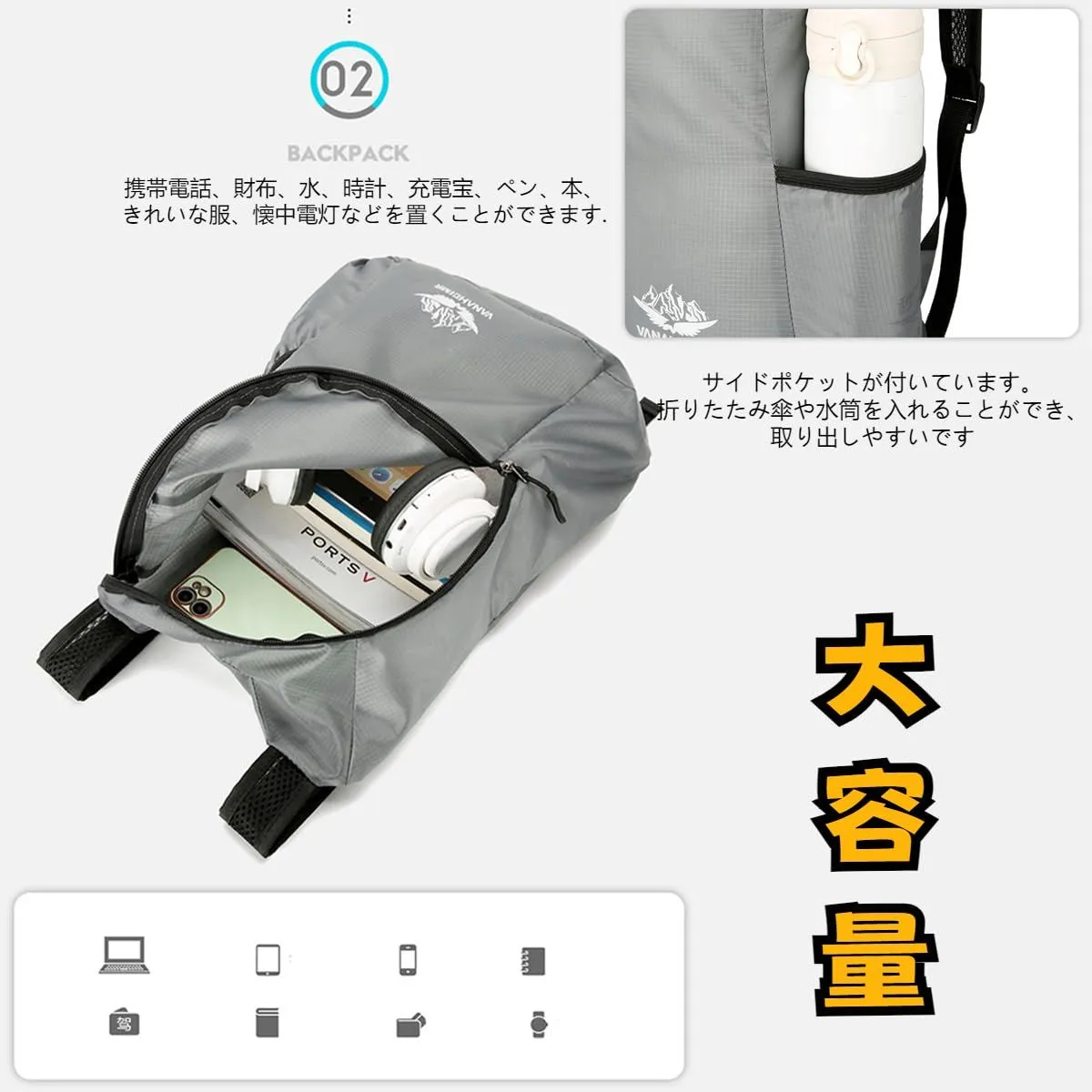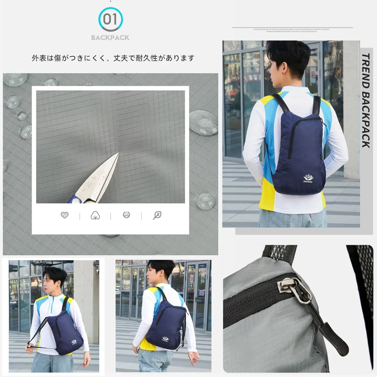 優れる耐久性と防水性: この折りたたみ リュックサックの外表は傷がつきにくく、丈夫で耐久性があります.この携帯リュックサックは生地が防水で雨にふられても隙間から水が入らず安心です。
