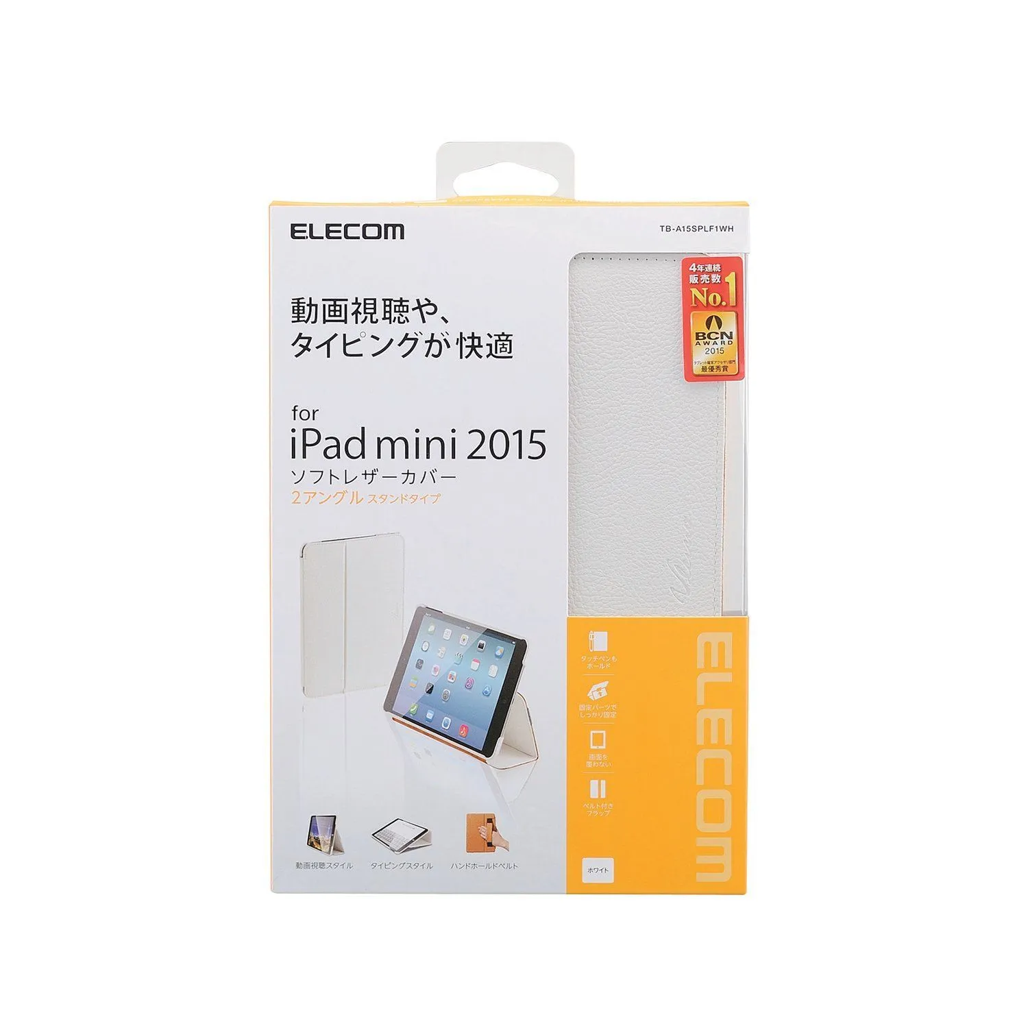 【人気商品】手帳型ソフトレザーケース mini4[2015年モデル] 2段階角度調節スタンド機能付き iPad ホワイト 【2015年モデル】ELECOM TB-A15SPLF1WH