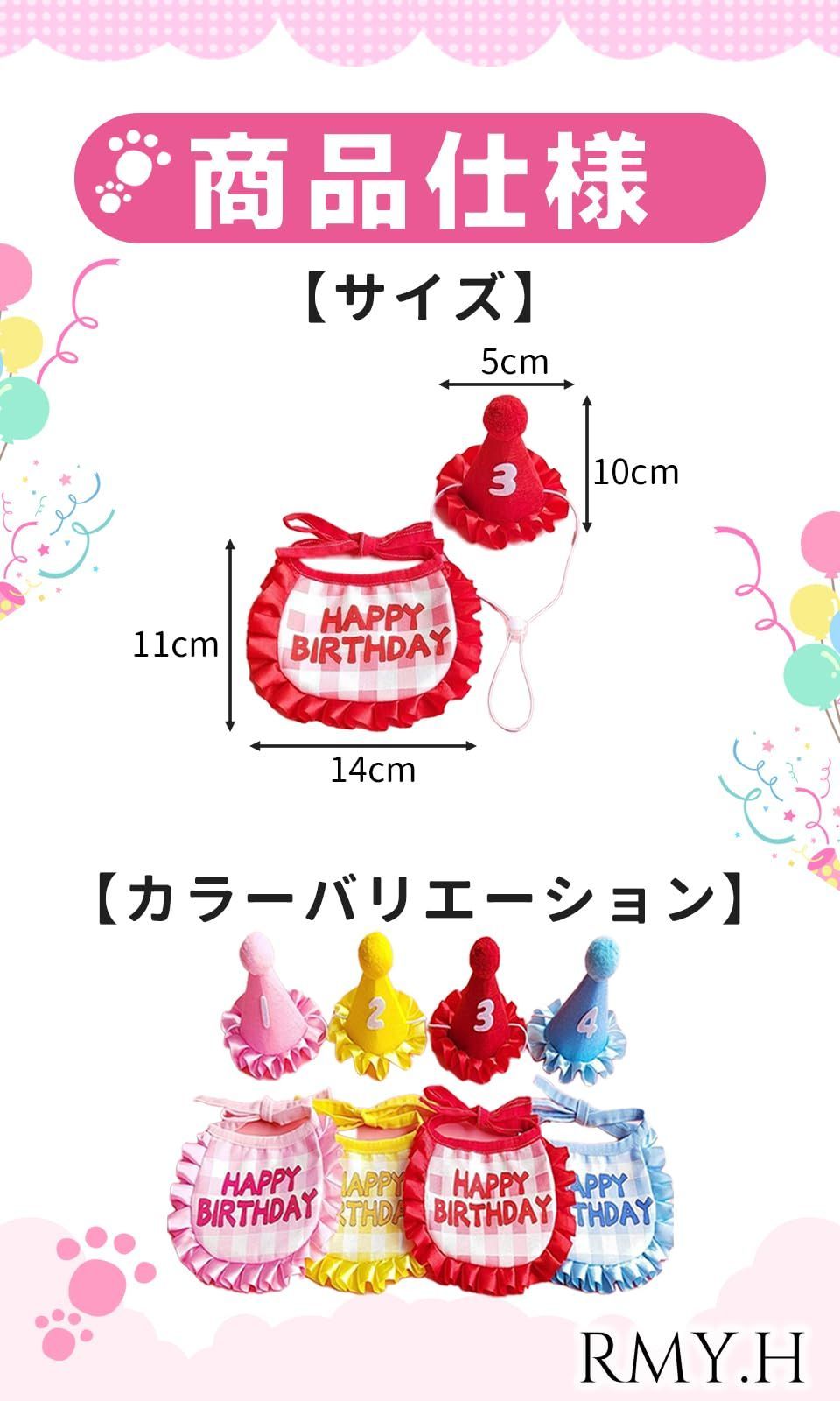 【】製品は全て検品後出荷しております。ただ万が一不備があった場合は30日の期間内であれば無償で交換致します。 お誕生日パーティーの雰囲気を盛り上げ、ワンちゃんとにゃんこが忘れられない誕生日を過ごしましょう! 可愛いデザインの帽子で簡単に装着できます。よだれかけはお祝いのメッセージがプリントされており優しい素材の為安心してペットの首に巻けます。数字は0~9の数字がついており年齢を問わず再利用も可能です? 製品は全て検品後出荷しております。ただ万が一不備があった場合は30日の期間内であれば無償で交換致します。 使用方法 可愛いデザインの帽子で簡単に装着できます。よだれかけはお祝いのメッセージがプリントされており優しい素材の為安心してペットの首に巻けます。数字は0~9の数字がついており年齢を問わず再利用も可能です 最後までご確認頂き誠にありがとうございました。 上記をご確認頂き、ご購入いただけましたら幸いです。 何かご不明な点がございましたらお気軽にメッセージからお問い合わせ下さい。