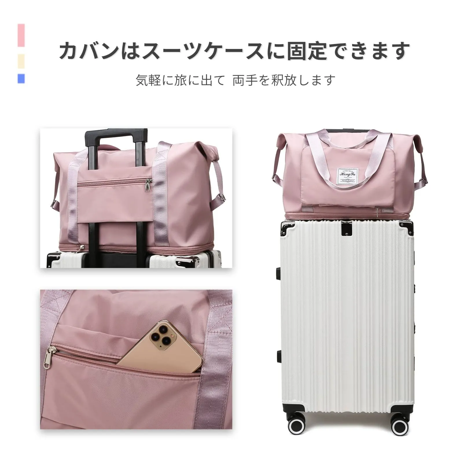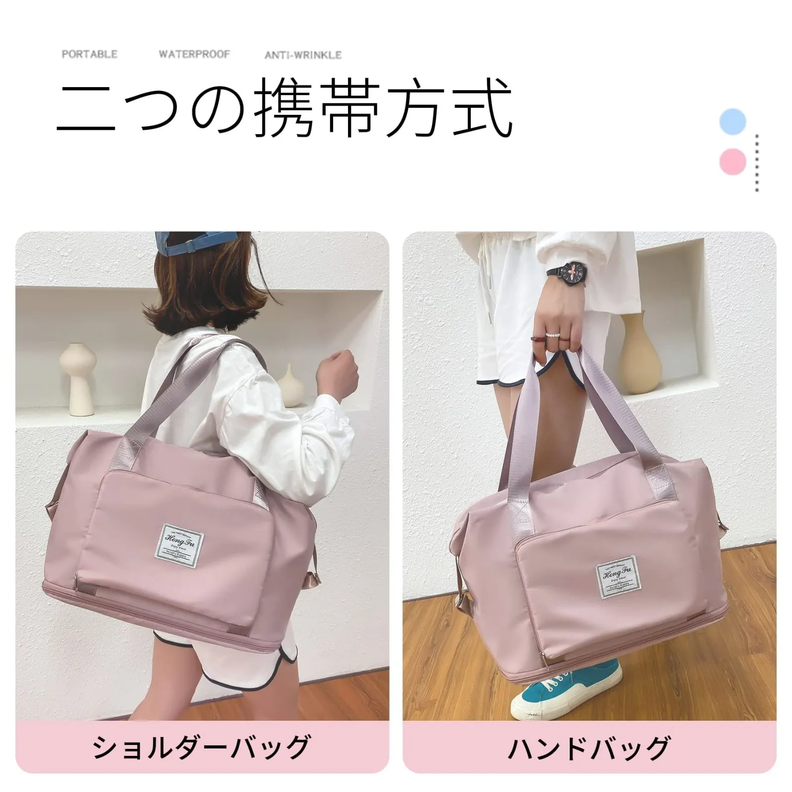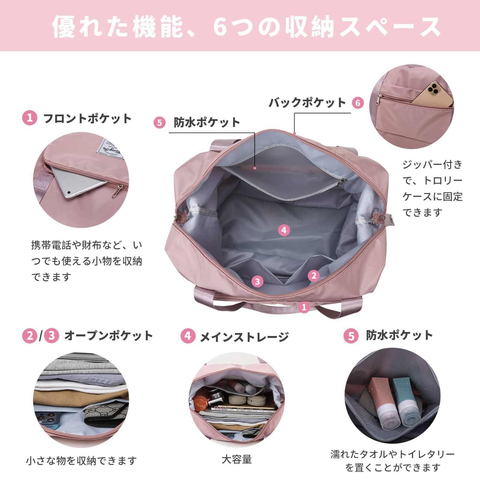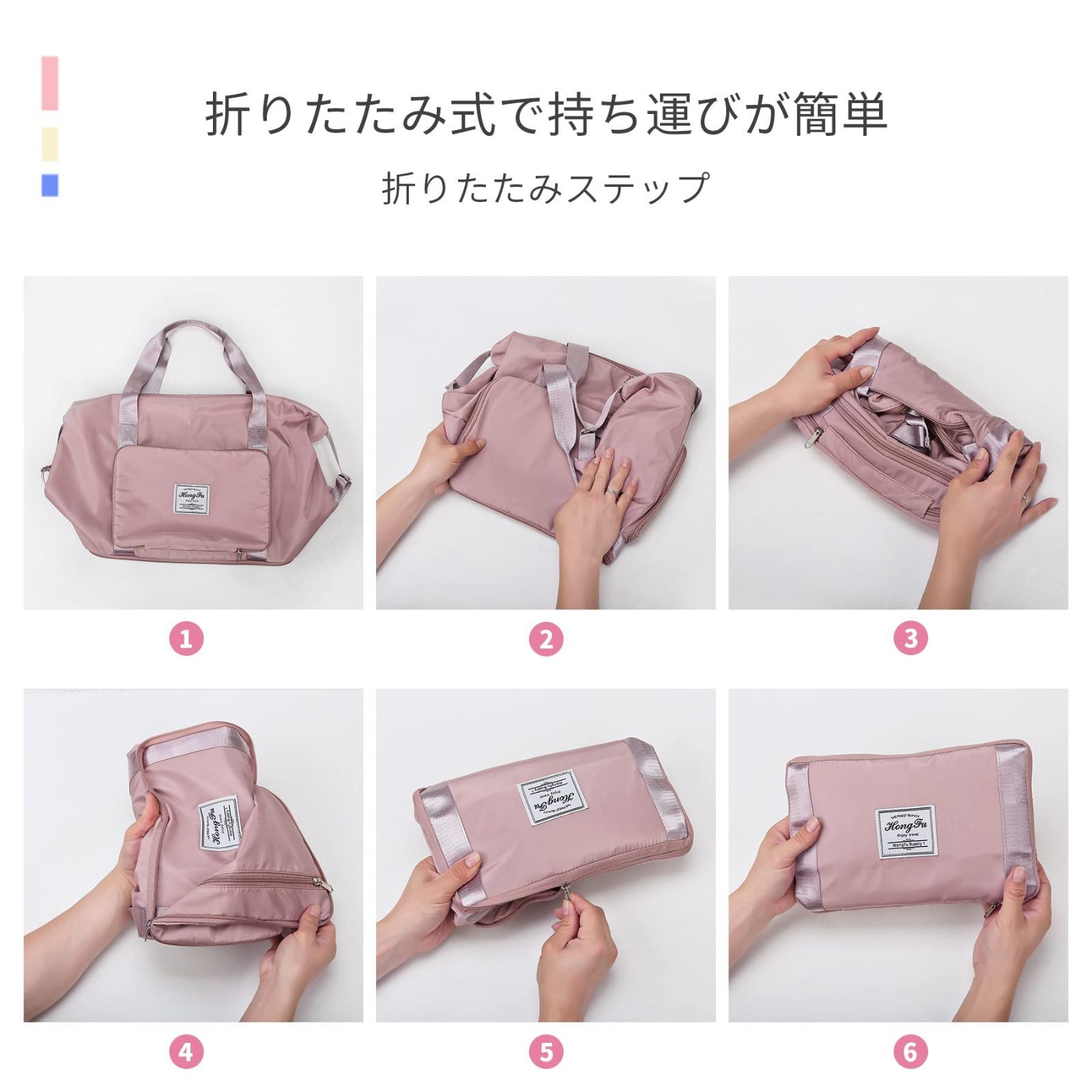 ALLMIRA キャリーオンバッグ 折りたたみ ボストンバッグ 折畳み 大容量 旅行バッグ スポーツバッグ ダッフルバッグ トラベルバッグ 防水 軽量 折り畳み 旅行カバン キャリーオン トートバッグ 乾湿分離 撥水 レディース 出張 修学旅行 (ブラック) (桜色) (グレー)