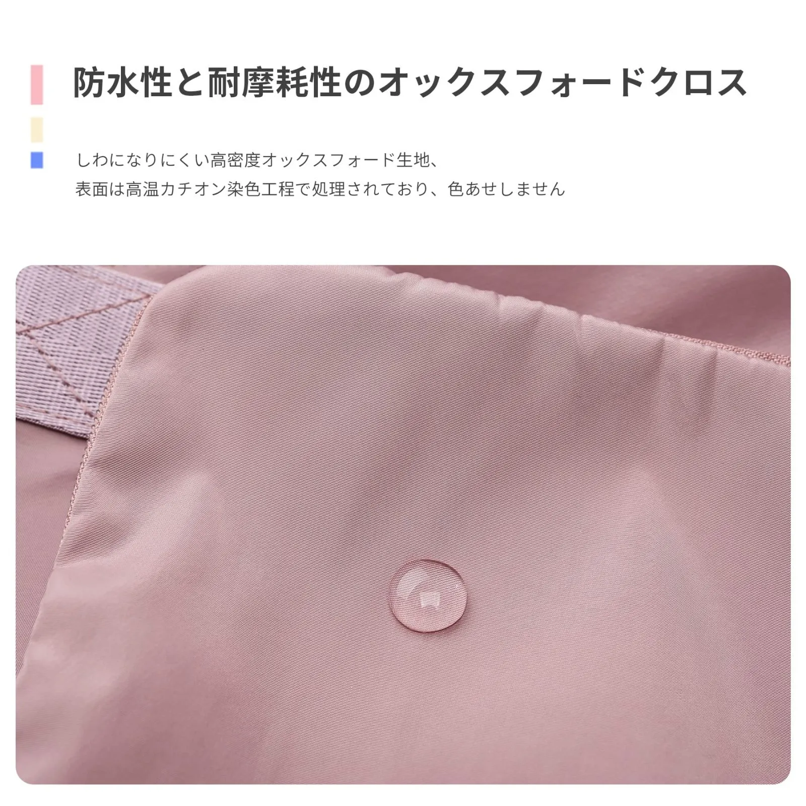 【防水生地】耐摩耗性、撥水性を備えた高密度オックスフォード生地。