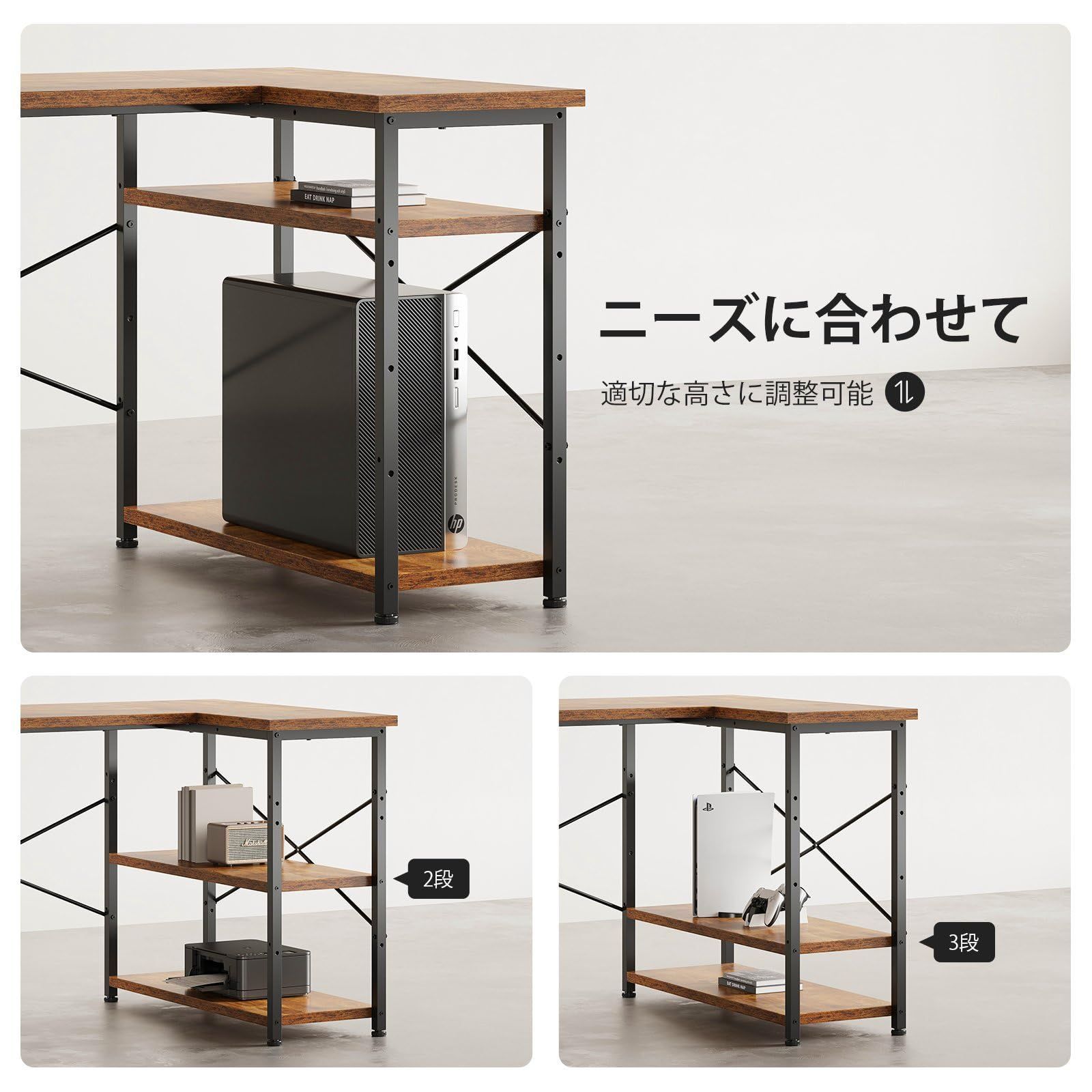 【数量限定】Maihail パソコンデスク l字デスク 机 勉強机 学習机 右棚左棚 幅120cm pcデスク コーナーデスク 本棚付き 引き出し付き 幅120cm ピンテージ