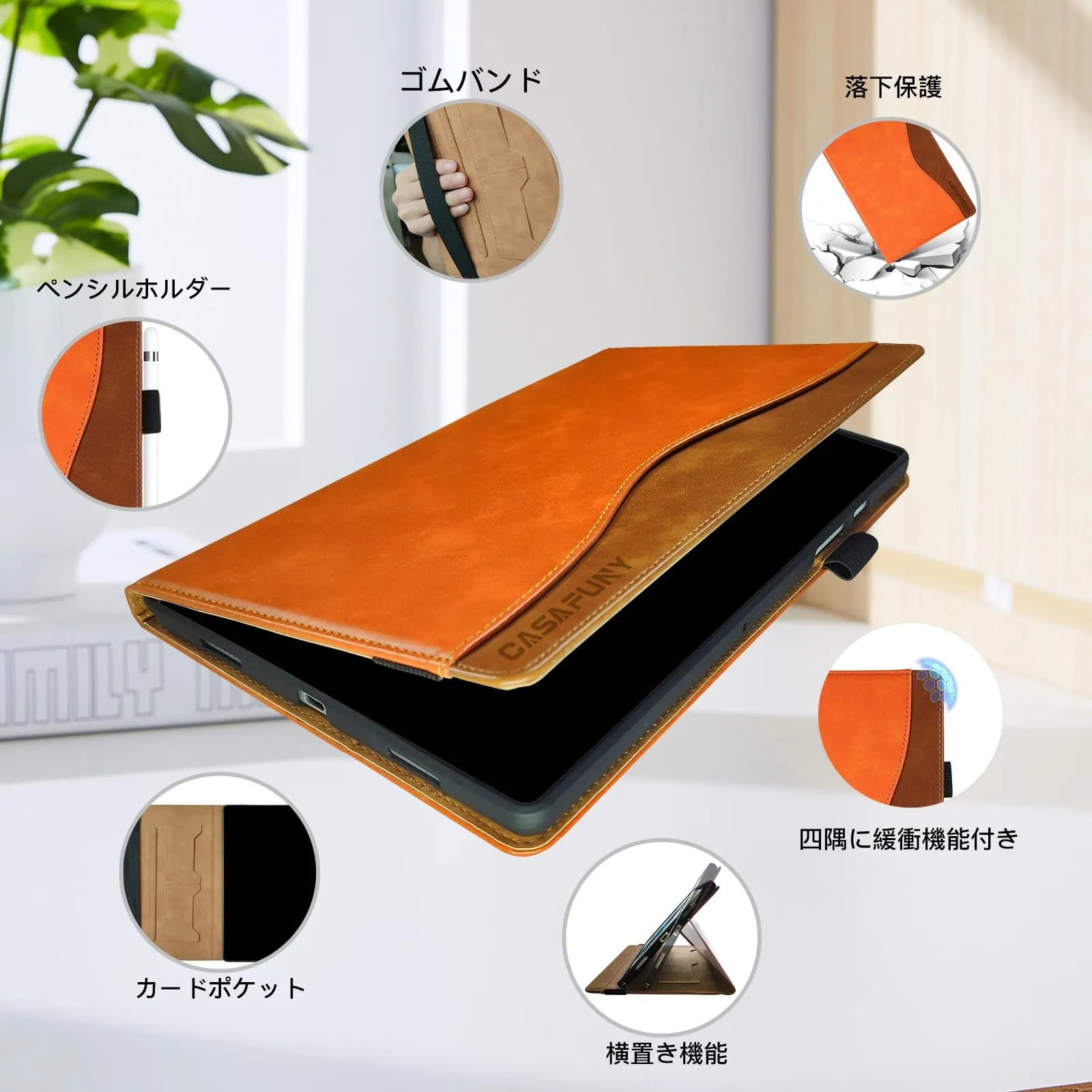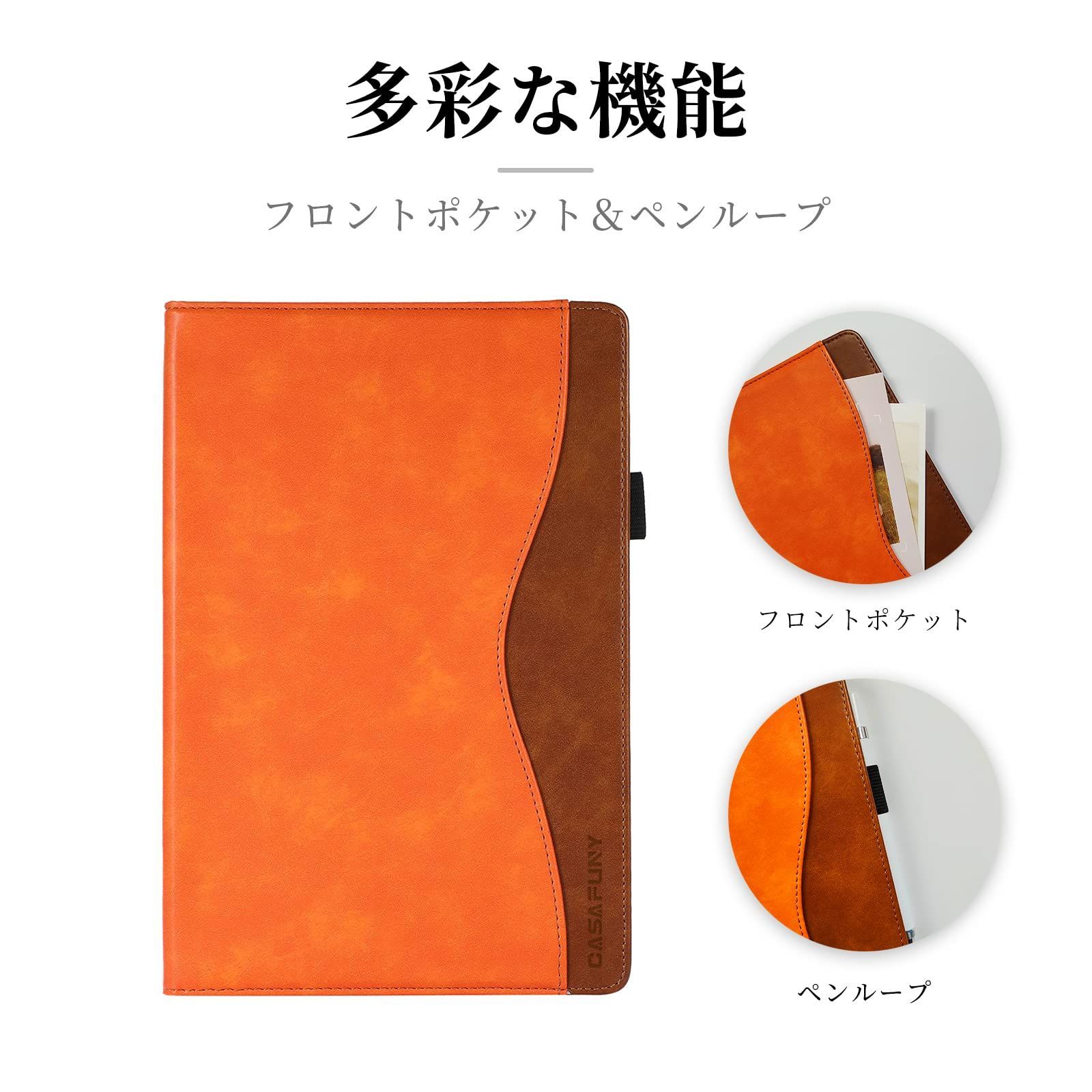 iPad 9.7 ケース CASAFUNY iPad 9.7 2018/2017ケース シンプル iPad 9.7 ケース 2018と2017年モデル アイパッド 第5 / 6世代 ケース PUレザー tpu材質iPad Air 2 / iPad Air ケース 肌触り良い iPad Pro 9.7 ケース カードポケット スタンド機能 傷つけ防止 指紋防止 iPad 9.7インチ ケース,オレンジ色