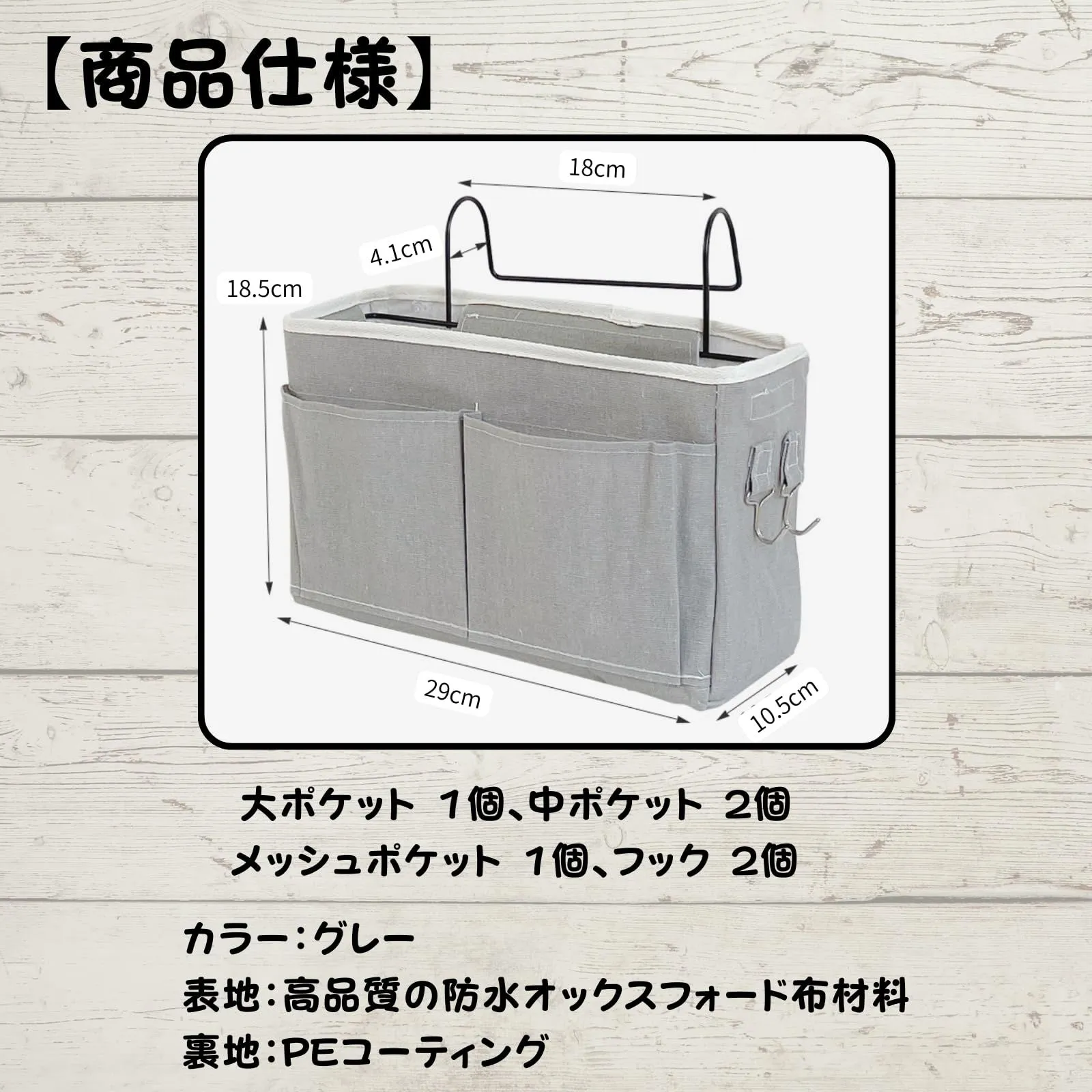 【サイズと容量】コンパクトながらも収納力抜群。サイズはヨコ29cm×タテ18.5cm×奥行10.5cmと、限られたスペースにもフィット。ペット用品をすっきりとまとめて、日々のストレスを軽減します。 ペット用品ってどうしても乱雑になりがちですよね。ケージの側面にかんたんに引っ掛けられるから、ケージのお手入れやトイレ掃除もラクラク。 お部屋も広々使えるうれしいアイテムです。 ゲージ周りの小物整理に最適です。ゲージに取り付けるだけで、お部屋をスッキリ保つことができます。 おむつやブラシ、爪切りなどの細かい必需品が一か所に整理され、使い勝手が向上します。 ポケットは大1個、中2個、メッシュ1個の全部で5個あり、フックが2個付いています。たっぷりの容量で非常に便利です。 ペットだけでなく、ご自分のベッドやベビーベッド、お家の玄関やキッチン、車内の収納にも役立ちます。 ポケットの内側はポリエチレンコーティング(PEコーティング)が施されており、汚れや水に強い仕様です。 お手入れがしやすく、日々の使用でも汚れがつきにくいのが特長です。 ※ディスプレイ環境により色味が異なる場合があります。ご理解の程、よろしくお願い致します。 最後までご確認頂き誠にありがとうございました。 上記をご確認頂き、ご購入いただけましたら幸いです。 何かご不明な点がございましたらお気軽にメッセージからお問い合わせ下さい。