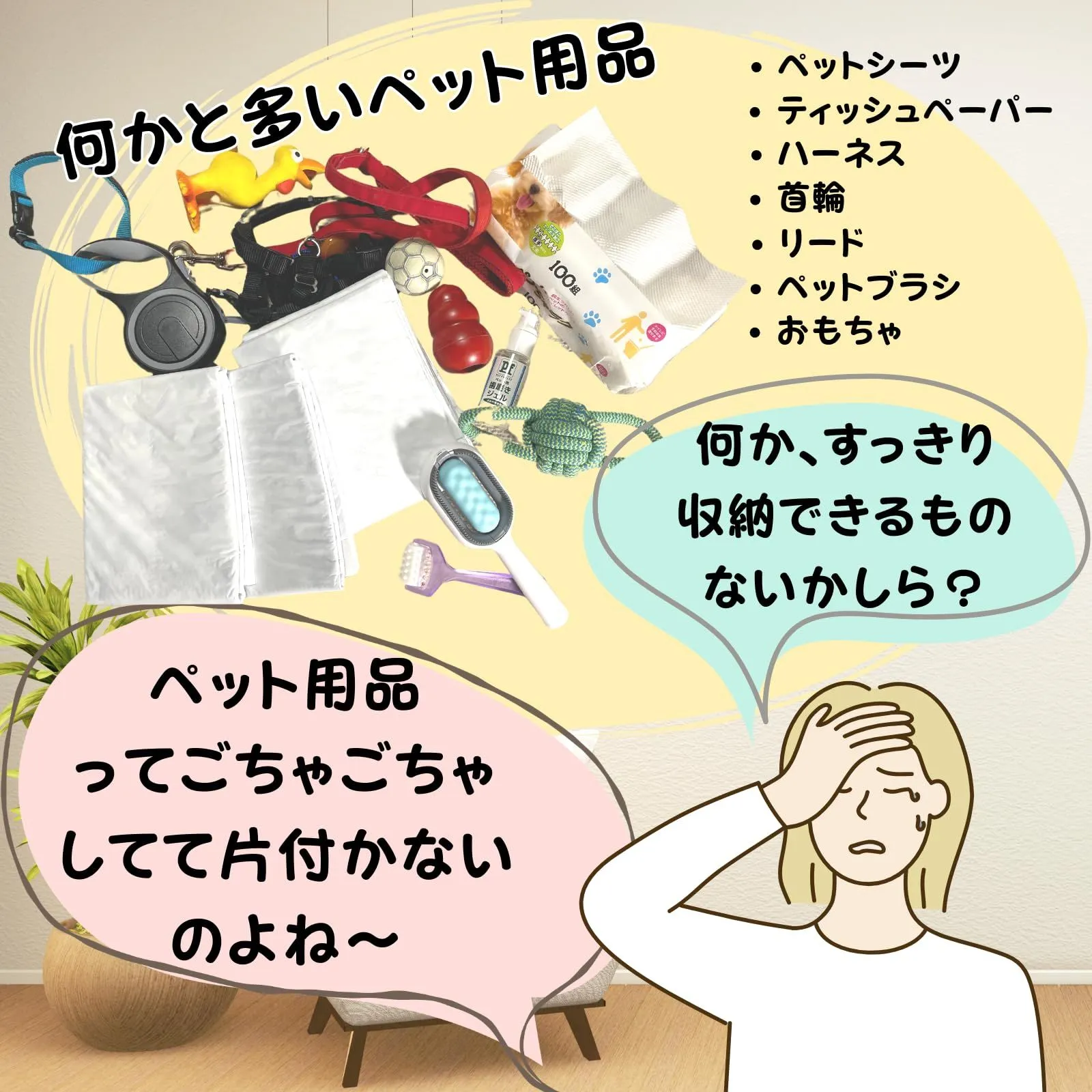 【整理整頓】ペットのお世話がもっと楽になるK-Bomのおむつストッカーで、必要なアイテムをすぐ手の届く場所に。ベッドサイドやケージに簡単に取り付けられるので、おむつやおもちゃ、お手入れ用品などをスマートに整理できます。