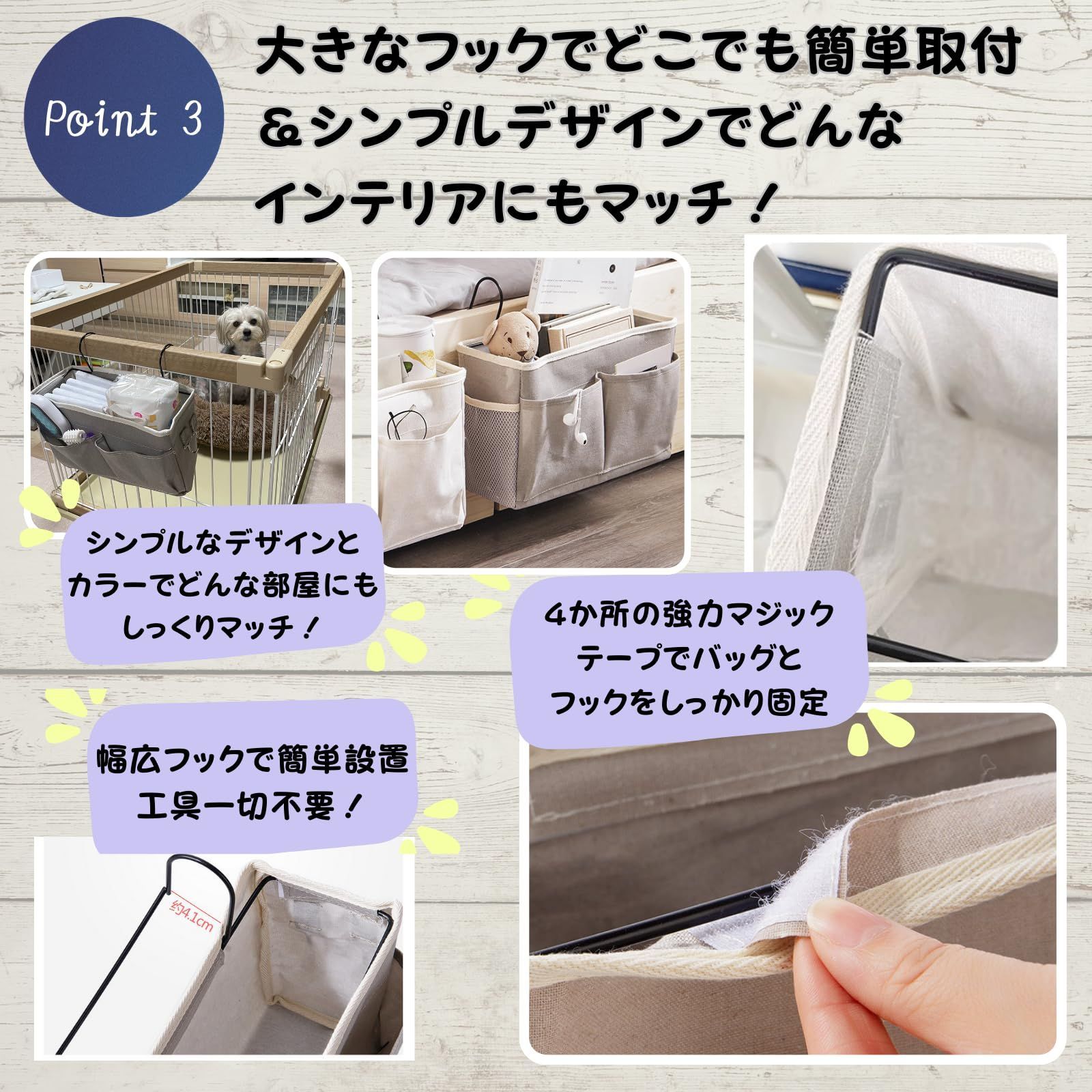 収納バッグ オムツストッカー ペット用品 ベッドサイド・ケージ対応 犬猫用 K-Bom 吊り下げ式ポケット