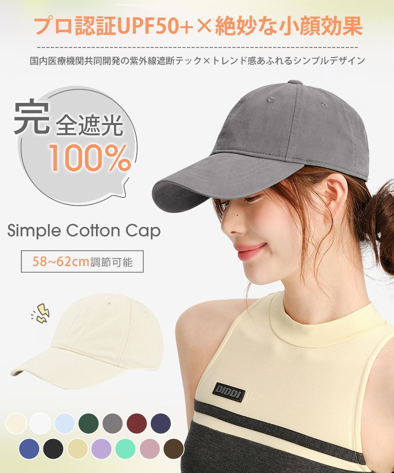 【国内専門機関認証済みUPF50+・パーフェクト小顔効果・ファッション感MAX】 日除け帽子 ランニング 紫外線対策 サイズ調整 深め 夏用 涼しい おしゃれ 無地 綿 スポーツ・ゴルフ・自転車・釣り・野球