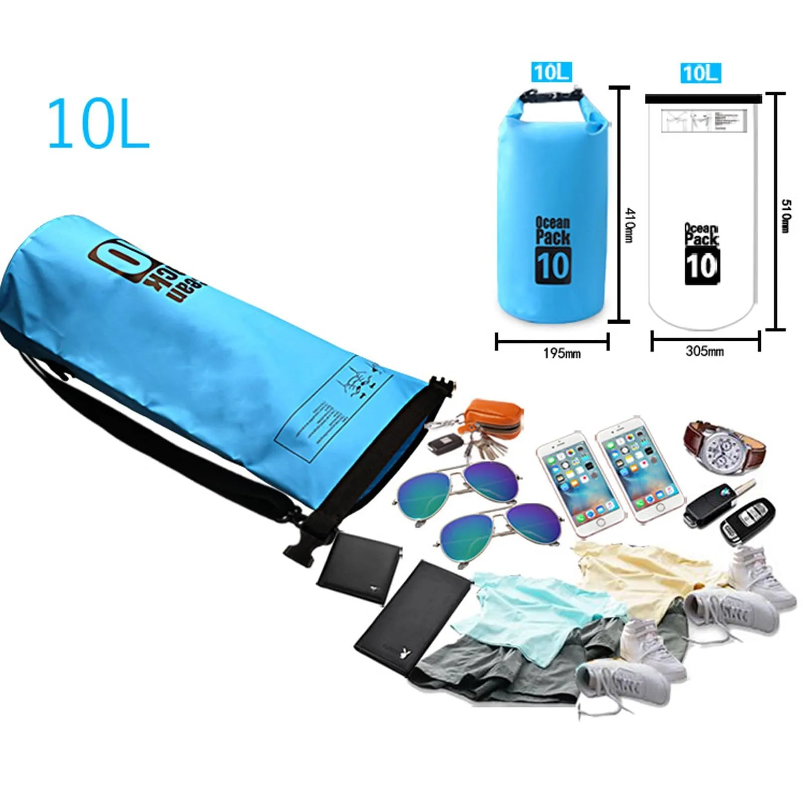 【調節可能肩ベルト】10 L型バケツ型防水バッグシングルショルダー高密度ナイロン製調節可能肩ベルトを搭載して簡単に長さ調整ができ、体にフィットします。