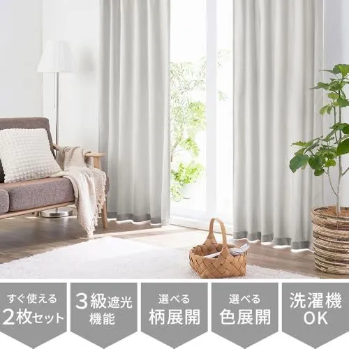 ベルーナ(BELLUNA) カーテン 2枚セット 遮光 2枚組 セット ドレープカーテン カーテン シンプル 無地 幅100 洗える ウォッシャブル 北欧 安い おしゃれ 遮光カーテン 幅100 サイズ 無地 シンプル 洗濯可 新生活 一人暮らし 引っ越し 模様 (556476-101)